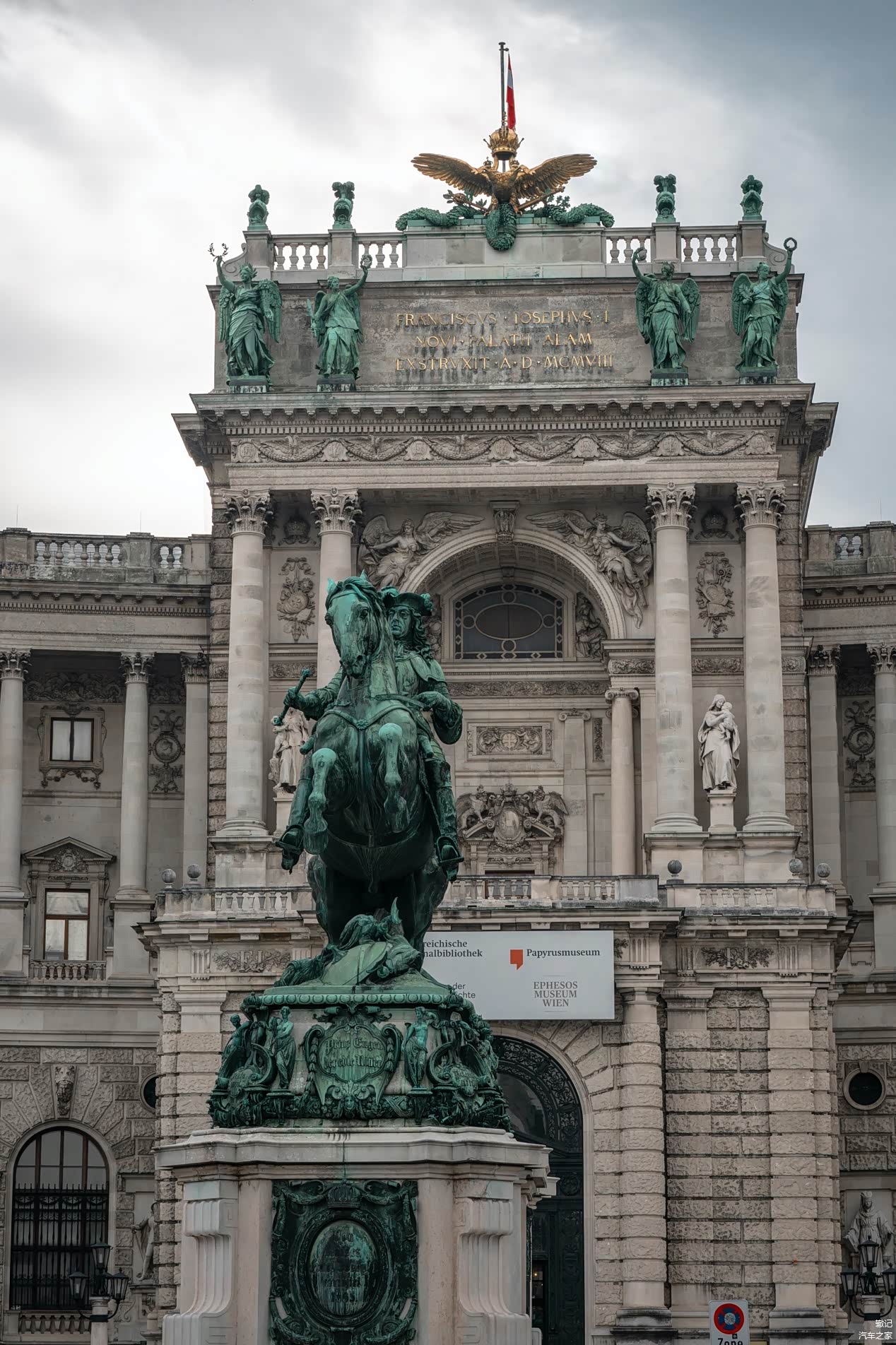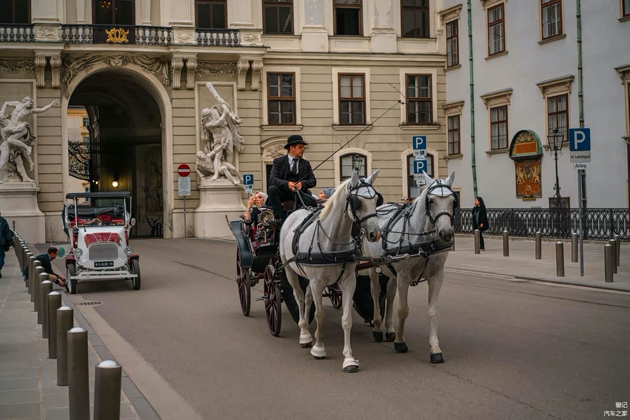 从大门进入右侧就是霍夫堡皇宫,皇宫外对面的广场成了露天停车场,整整一大片。虽看起来不那么和谐,但还是满实用的。