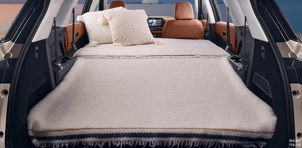 值得一提的是,探陆二、三排座椅放倒后均可达到纯平状态,当两排座椅均放倒后,后备厢便可秒变一间“大床房”,家庭出游累了可以随时在车上歇息。