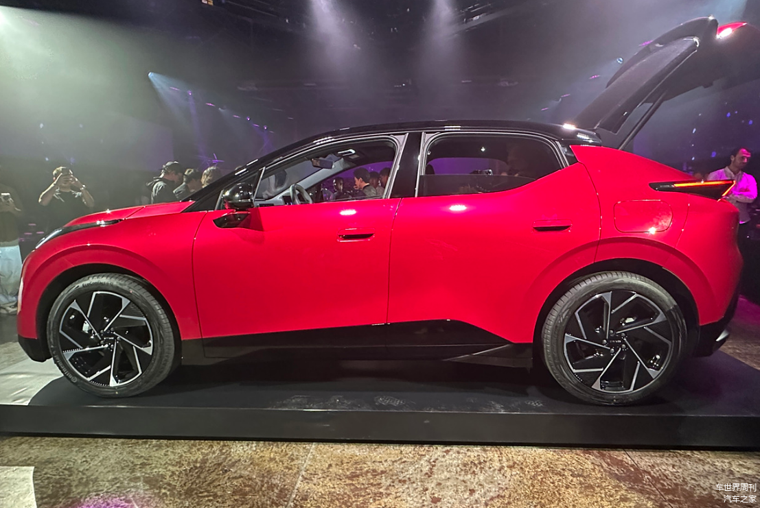 车身侧面,领克Z20的车身线条也非常动感,整体呈向前俯冲的态势,A柱部分采用隐藏式设计,非常特别。此外,隐藏式门把手和无框车门也都是比较流行的元素,下方还配有大尺寸五辐式造型轮毂,整车风阻系数为0.25。