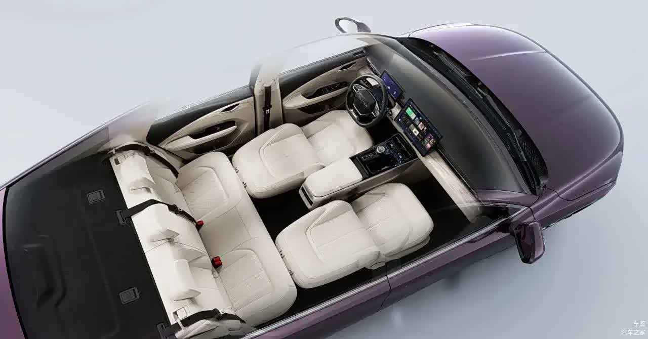 新车提供了玄黑深色和浅沙拼色两种内饰配色,整体看起来比较大方简洁。炫黑深色风格内饰带有不少金属饰板,浅沙拼色内饰则采用了些许木纹饰板。中控大屏尺寸15.6英寸,全液晶仪表尺寸8.8英寸。两幅式方向盘采用了平底设计,中央通道位置宽大,带水晶风格换挡旋钮。