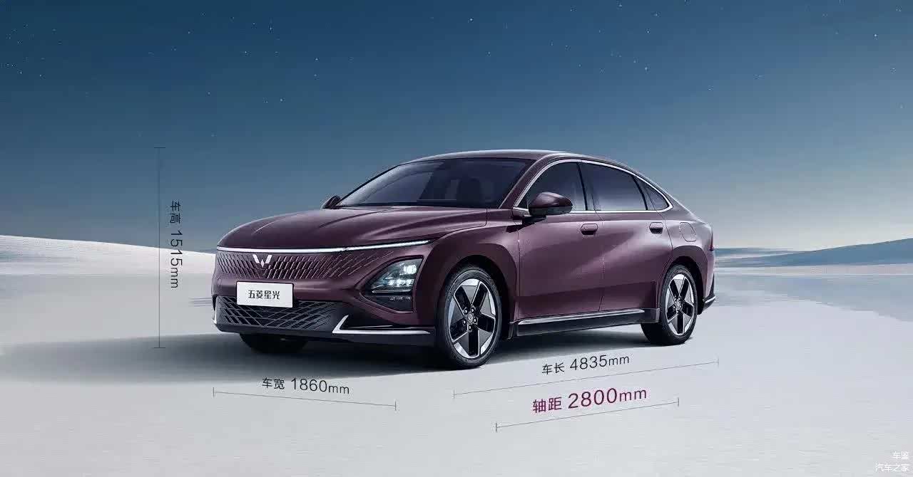 五菱星光是五菱汽车的首款轿车产品,车身尺寸4835/1860/1515mm,轴距2800mm。整体颜值比较动感,前脸采用了贯穿式灯带和无界式中网,侧面线条有不错的光影效果。尾部同样采用了贯穿式尾灯,黑色后杠和车身撞色。