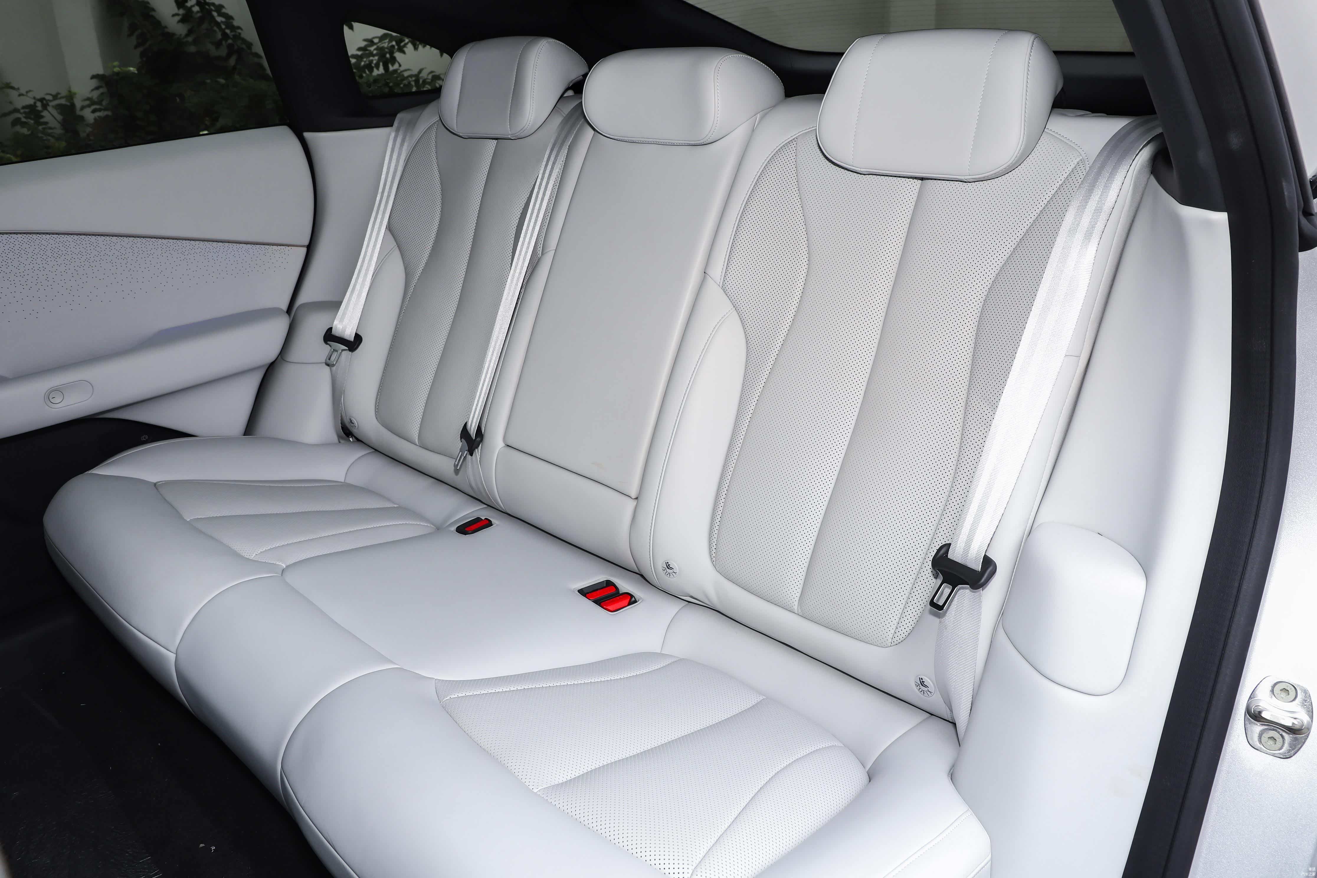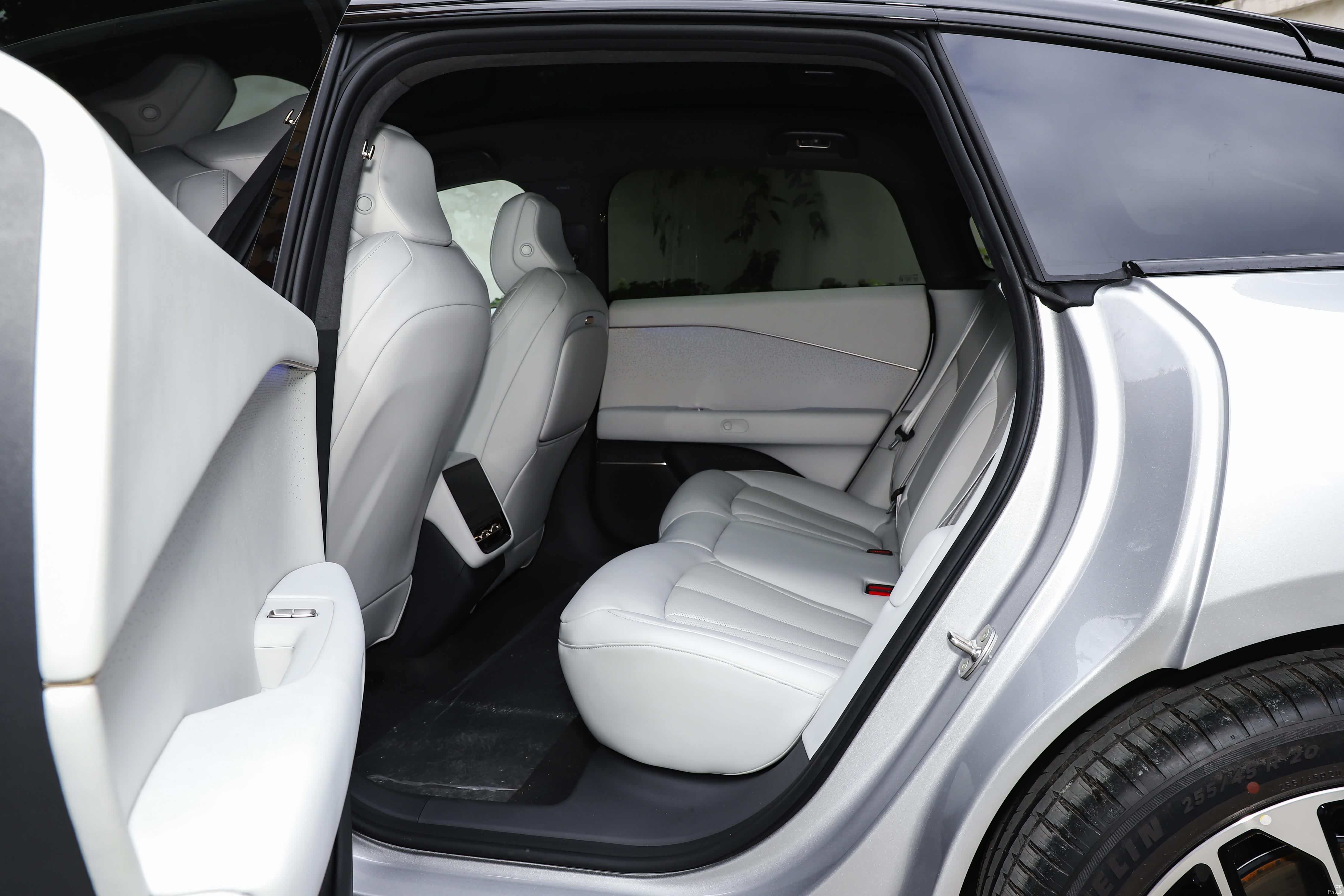此外,空间也是小鹏P7+的一个亮点,虽然它的悬浮车顶造型很夸张,但是内部空间的表现还是可圈可点的,拥有88%的得房率,后排的腿部空间非常宽裕,顶部的话不算特别友好,但是对于我这种175mm身高的人来说也能接受。这里不得不提一下,P7+的后排座椅设计和MONA M03的有点类似,都是坐垫角度较高,显得靠背太直,如此设计虽然能缓解头部空间,但是却牺牲了长时间乘坐的舒适性。也不能说不好,只是对不同的客户有不同的体验。