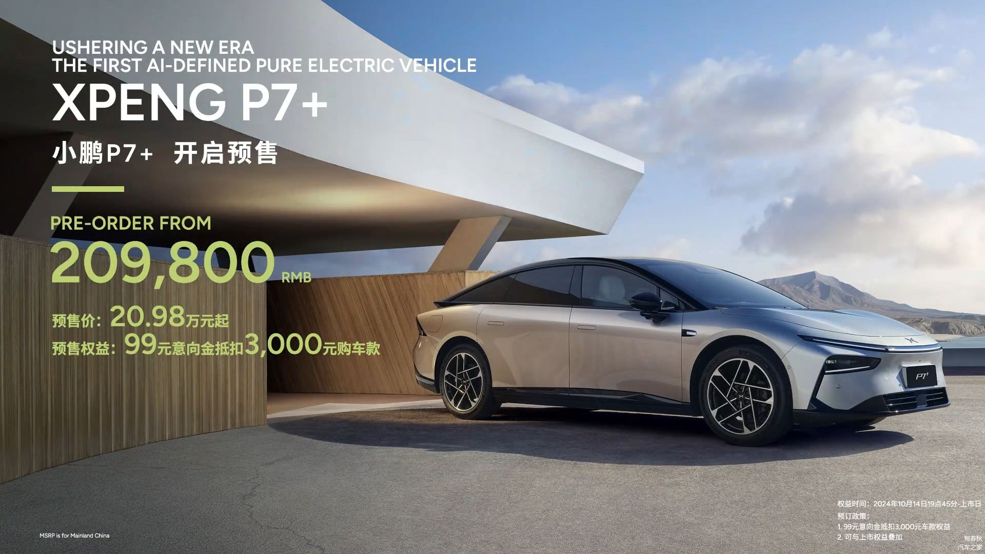 再来看价格,以小鹏P7的低配版本——P7i 550 Pro来看,其售价22.39万元;小鹏P7+的预售价格为20.98万起,按照行业惯例,上市指导价会更低一些,很可能将低于20万元,这样来看,小鹏P7+的价格优惠确实更明显一些。