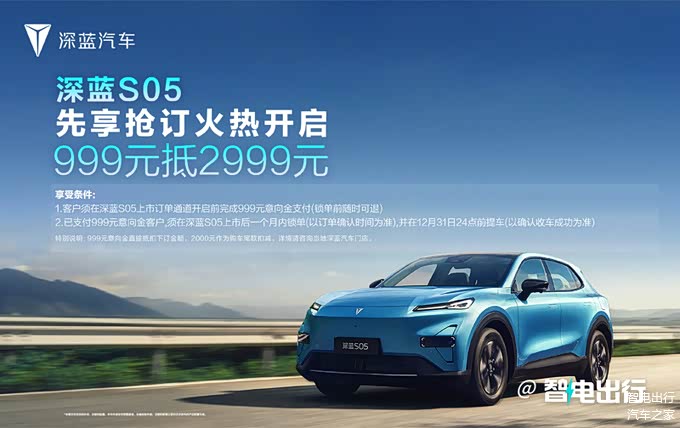 深蓝首款紧凑型SUV S05将于10月20日上市,先享抢订用户支付999元意向金可膨胀为2999元尾款。 深蓝S05(图片 | 参数 | 询价)采用短前、后悬设计,风阻系数0.25Cd,车长4.62米,轴距比级别更高的零跑C10还长55mm,提供增程版和纯电版可选。新车还搭载百万像素智趣光影大灯和4K智趣云台相机,支持智能一键抓拍、Vlog创意拍摄等功能。