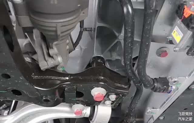 G6的前副车架与车身采用硬性连接,这种做法虽然提高了连接点的刚度,有利于提升操控响应,但却不利于隔离簧下震动,可能影响NVH效果。如果愿意增加投入,采用衬套加支架固定的方式或许能取得更好的平衡。