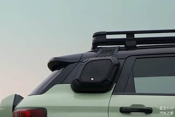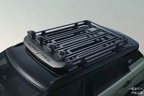 由官方公布的细节图能看出新车采用了双拼色车身与悬浮式车顶,并且在车顶上还拓展了超大尺寸越野装备架,前端还配备了四个户外照明系统据了解,车顶行李架的载货面积为1.3㎡,承载量为50公斤。