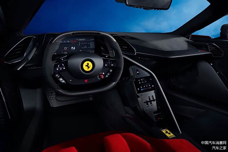 有意思的来了,上一代LaFerrari采用的是以6.3L V12自吸发动机为基础的混动系统,而到了如今的F80,这台车只配备了一台3.0T V6电动&废气涡轮增压发动机,虽然电机增加到了三台,但还是会让人觉得“寒碜”了点,特别是对多缸声浪比较着迷的人而言。