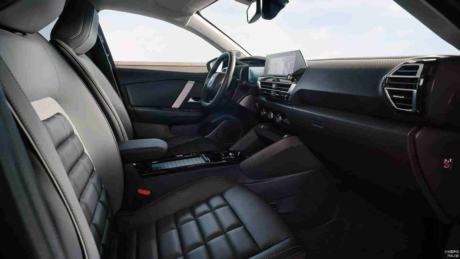 座舱延续了以驾驶者为主的设计,中控仪表都倾向驾驶位。中控还配备了5.5英寸液晶仪表、10英寸多媒体中控屏,同时像三辐式多功能方向盘、空调实体按键、音量实体旋钮也都具备,没有学习成本。功能方面,新车也具备CarPlay、安卓Auto互联、自动空调、自适应巡航、胎压监测、倒车影像、盲区监测等。