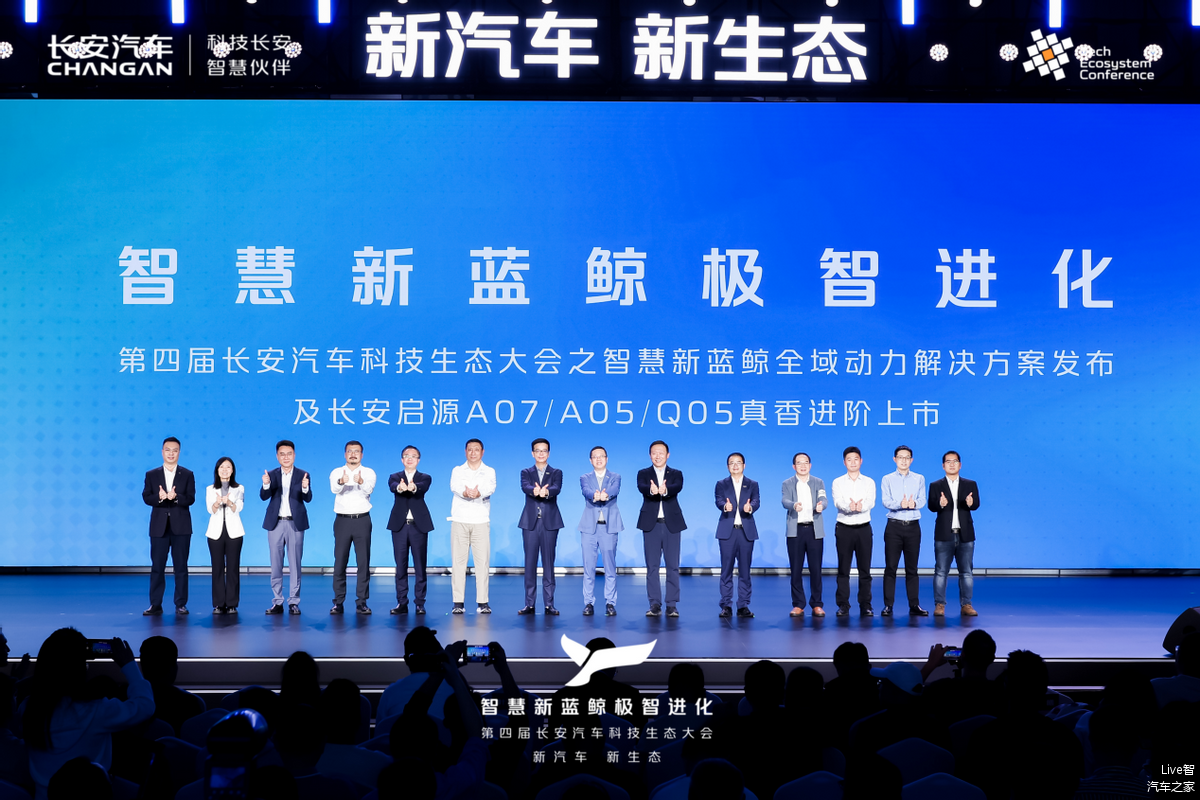 10月18日,第四届长安汽车科技生态大会之智慧新蓝鲸全域动力解决方案发布及 长安启源A07(图片 | 参数 | 询价)/A05/Q05真香进阶上市发布会在长安数智工厂举行。软件定义动力,长安汽车“智慧新蓝鲸3.0全域动力解决方案”极智进化,开启汽车智慧动力新篇章,为消费者带来“智慧智能新蓝鲸 省钱省心更懂你”的全新用车体验。与此同时,长安启源搭载智慧新蓝鲸3.0技术的启源A07、启源A05、启源Q05三款产品也在会上进阶上市发布。