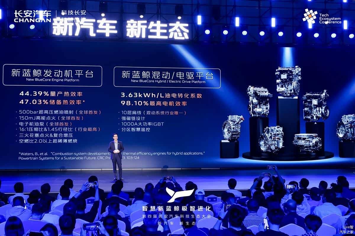 硬件方面,智慧新蓝鲸3.0承袭蓝鲸动力的领先基因,打造了先进的发动机及混动电驱平台,其中混动发动机量产热效率达到了44.39%,核心技术采用了全球首发的也是目前行业唯一的500bar高压燃油喷射系统、全球首发的150mJ 高能点火系统、全球首发的电子机油泵、16:1行业最高压缩比设计。