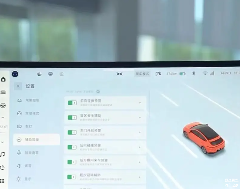 对于一些新手司机来说,倒车的时候是容易掌握不好方向的,如果稍有不注意,就容易发剐蹭,这款车配备的一项功能比较实用——倒车车侧预警系统,操作方式在是设置中找到辅助驾驶,然后打开盲区安全辅助即可。