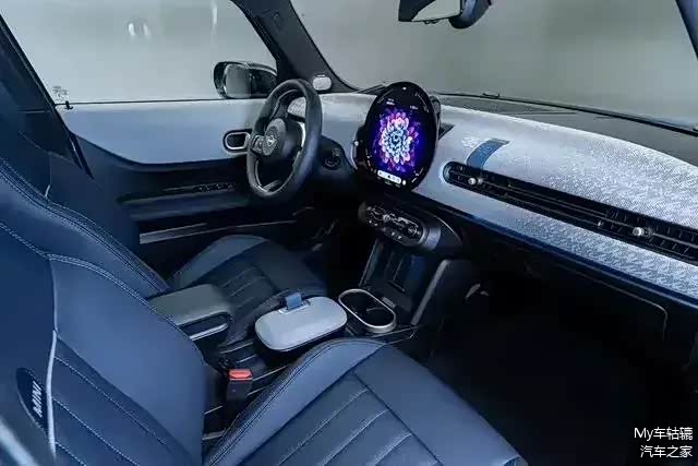 内饰部分全面更新,与三门燃油版车型设计一致。使用直径240毫米的无边框圆形OLED中控屏,还配备HUD抬头显示,中控屏下方保留了物理按键及旋钮。