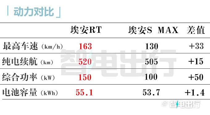 AION RT电机最大功率分别为150kW和165kW,最高车速163km/h,匹配55.1/68.1kWh宁德时代磷酸铁锂电池,10分钟补能200km,18分钟补能50%电量。