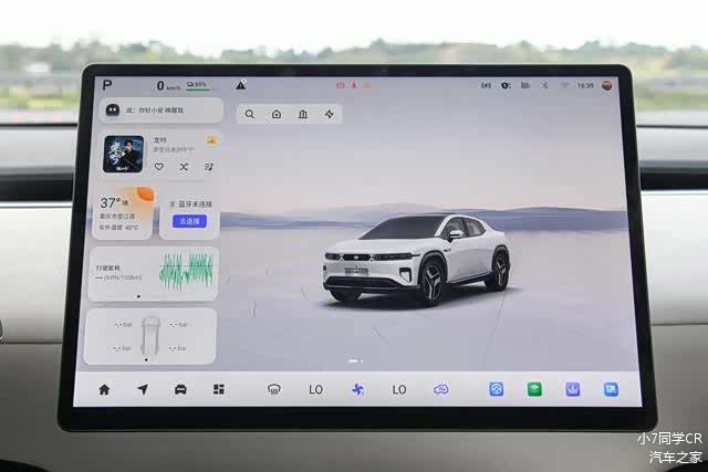 车机部分,长安启源E07搭载了TOP OS车机系统(内置高通骁龙8155车机芯片),支持卫星导航系统、OTA升级、车载4G网络+WIFI热点、道路救援服务、HUAWEI HiCar互联映射、面部识别、四音区语音识别控制系统(内置长安AI语音大模型)、车外语音控制、手势控制、车载应用中心等功能。