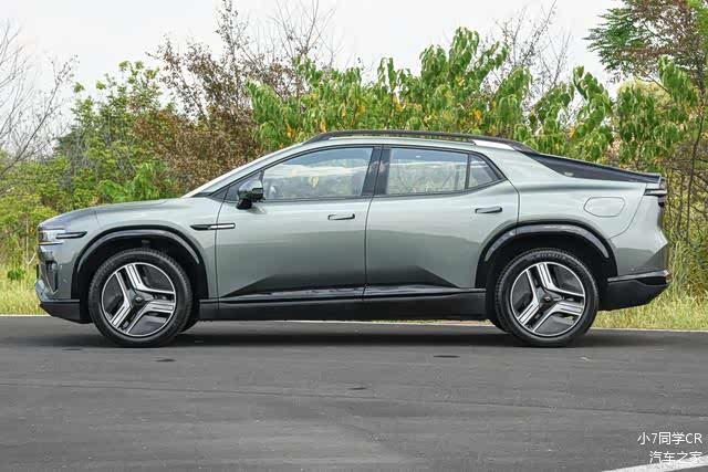 来到车身侧面,长安启源E07侧面造型有别于传统SUV车型的设计风格,其设计理念更靠近皮卡车型的车身姿态。此外,该车还提供宽大的车顶行李架,配合前后轮眉及侧裙处的熏黑装饰件,使得整车凸显出了不俗的个性化与动感气息。