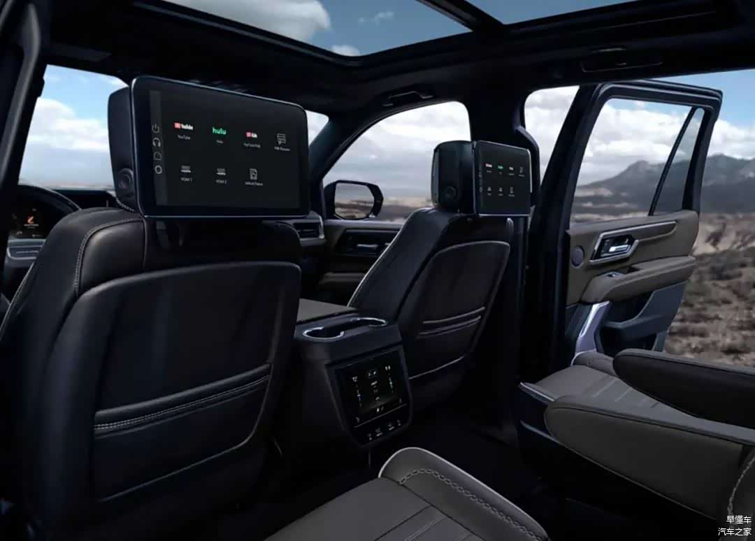 2025款育空的二排采用两张带扶手独立座椅,Denali版还为二排提供两块独立车载娱乐屏。据介绍,2025款YUKON 车型还将搭载Super Cruise辅助驾驶系统,而且配备了夜视系统,能在低照度环境通过探头进行环境监测识别行人和动物,并能及时提醒驾驶员。