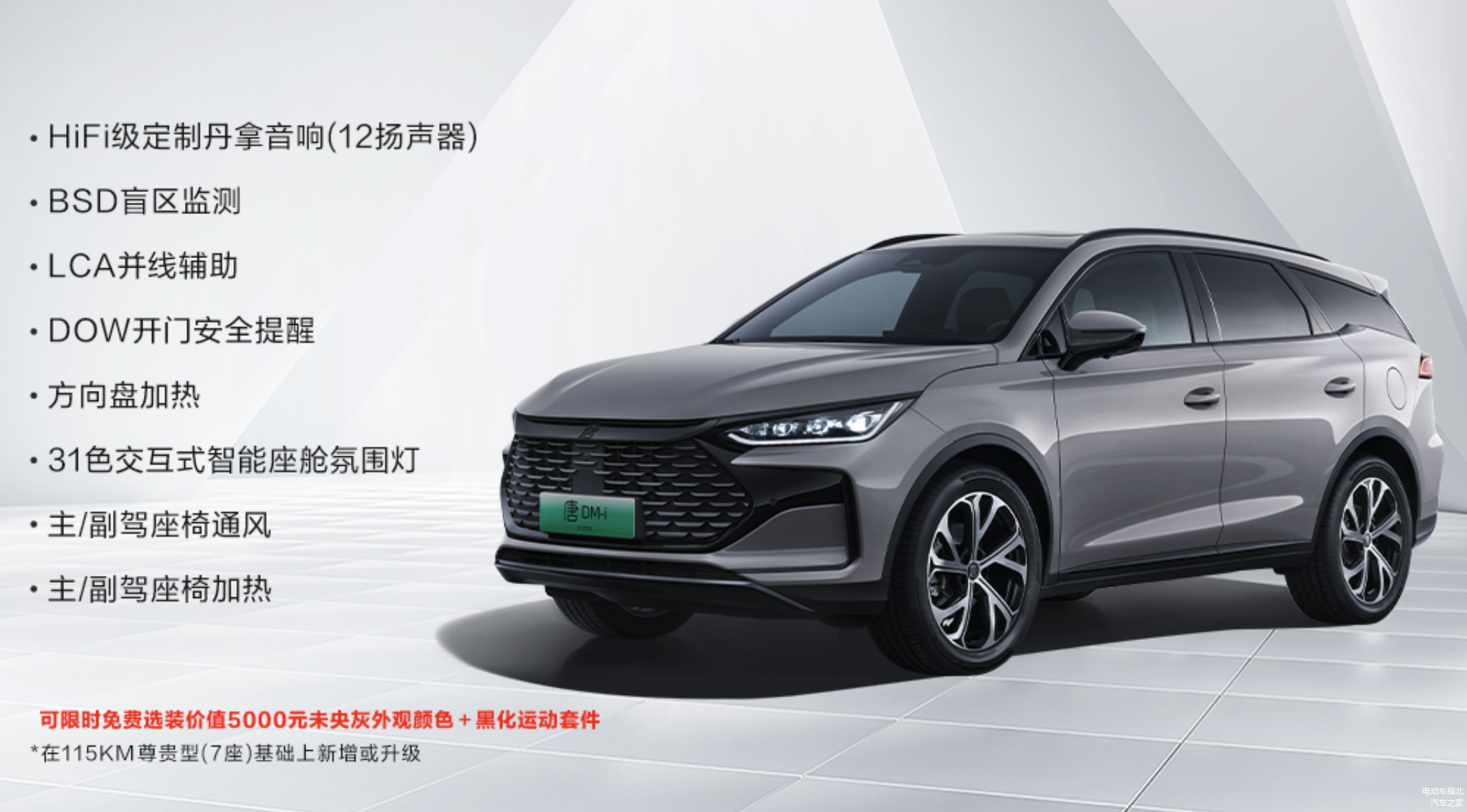 电池和续航:搭载比亚迪自家的磷酸铁锂插混功率型电池,容量为 21.504kWh,WLTC 纯电续航为 95km,CLTC 纯电续航为 115km。