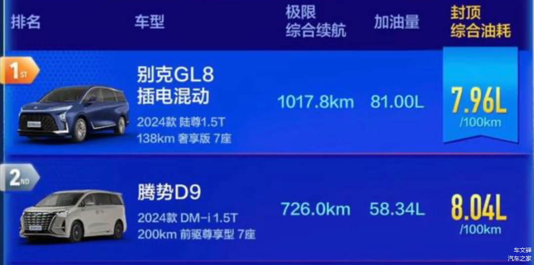 别克GL8 PHEV插混系统的性能更强且能耗更低,这是并非营销话术,而是客观事实。在权威媒体新能源MPV的实测中,极限实测里程、高速极限续航达成率以及能耗等方面,别克GL8 PHEV全面领先腾势D9。