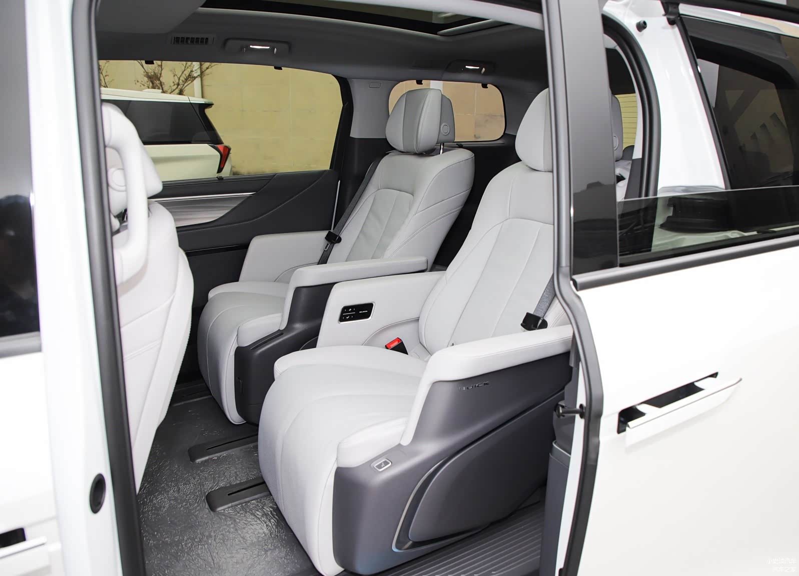 座椅方面第二排依旧是独立航空座椅,并增加慢回弹发泡层,乘坐柔软度更加的出众,而且在第二排座椅功能方面,该座椅具备头枕6向调节、腰托4向调节、电动腿托、三挡快速加热/通风和8点式3种强度按摩。