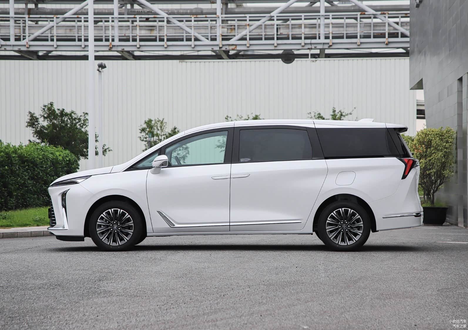 再来看新车的车身侧面部分,车身造型修长且厚重,尤其是平直的车顶更是让车身看起来很方正,同时保障了车内后排的头部空间,增加乘坐的舒适性,车窗部分则是贯穿式的熏黑配色设计,结合熏黑的D柱还形成了当下流行的悬浮式车顶造型,车门部分的腰线整体隆起明显,车门把手为当下流行的隐藏式造型,结合底部细长的镀铬饰条镶嵌,看起来整体感也很不错,多幅式的大尺寸轮毂则是提升着运动感。车身尺寸方面,全新GL8陆尊长宽高分别为5219/1878/1807毫米,轴距3088毫米,依旧定位于中大型MPV,大尺寸的车身还让车内空间很宽裕。