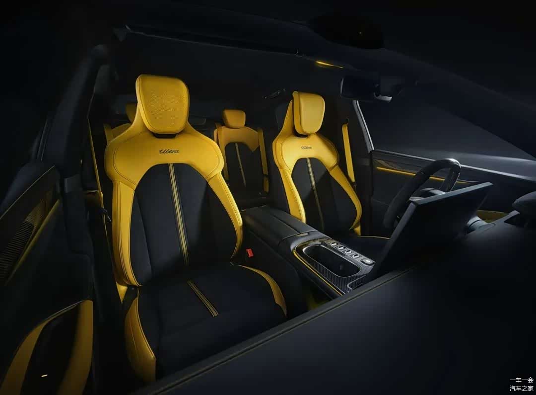 和之前已经发布的小米SU7Max相比,小米SU7 Ultra量产版在设计上更具攻击性和运动感,前保险杠下方有两条明显的前唇,尾部除了巨大的固定式尾翼,还配备了主动式扩散器。车内配备了专属的运动座椅,同时提供翻毛皮与碳纤维材质结合的方向盘。此外,车内还有多处碳纤维装饰。