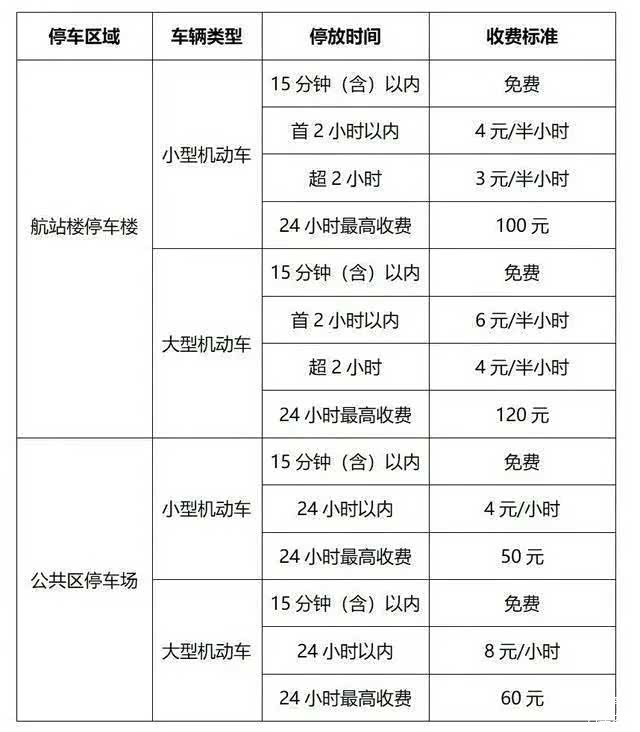 航站楼停车楼(近端)收费标准: