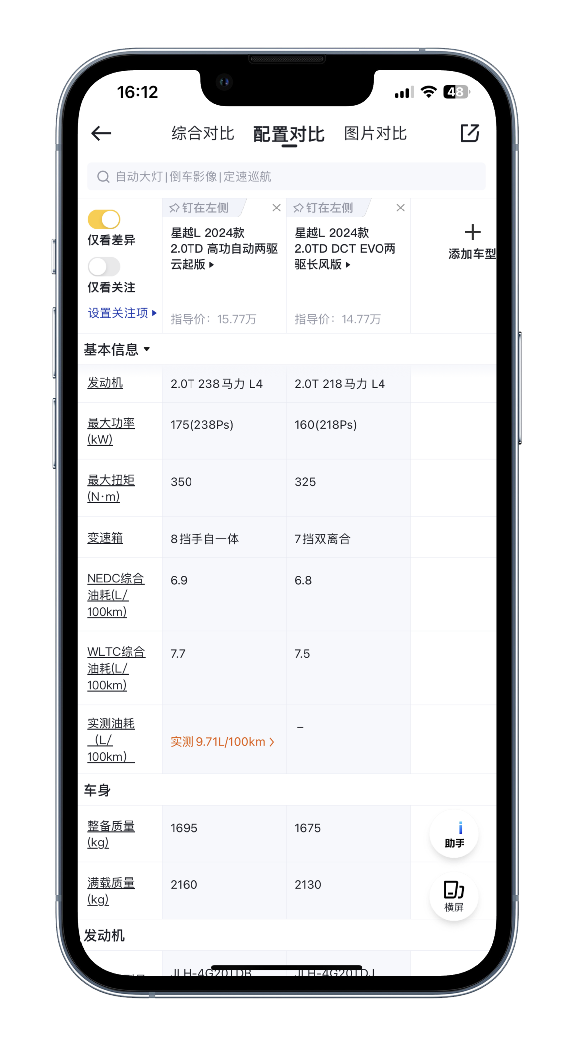 当然,消费者选择双离合版而不选择AT版还有一个比较现实的原因,那就是油耗了。根据现有车主实测反馈,双离合版在综合路况下的实测百公里油耗为8.76升,8AT版在综合路况下的实测百公里油耗为9.74升,可以看出,AT版要比双离合版百公里高1升油左右。大家选择星越L,油耗问题或多或少的都是一个顾虑,所以最终大部分人,为了保险起见,怕后期为了油耗问题后悔购买,所以最终都选择了油耗相对经济的双离合版。当然,如果你对油耗不那么敏感,反而对动力表现很在乎,那么高功率版的星越L,也不是不能尝试。资金上压力不大的话,反而高配的天际版更适合你。