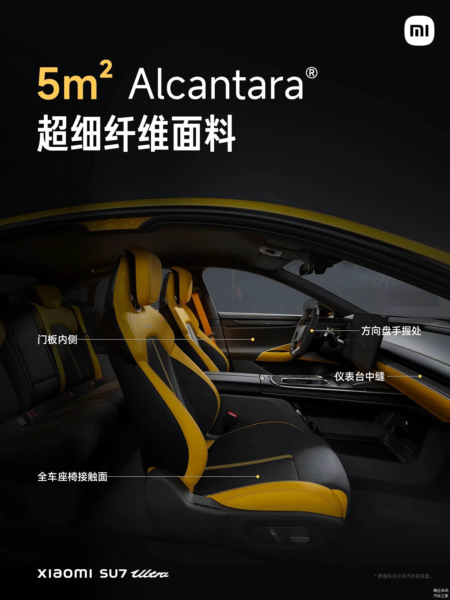 内饰方面,小米SU7 Ultra同样展现出了极高的水准。全新设计的运动座椅和方向盘,不仅造型动感,更在功能上进行了全面升级。座椅主动侧翼支撑功能的大幅提升,为激烈驾驶时提供了更好的身体支撑;而方向盘的赛车风格设计和碳纤维材质的运用,则让驾驶者在操控时更加得心应手。此外,全车广泛使用的意大利Alcantara超细纤维面料,不仅提升了豪华感,也让驾驶氛围更加沉浸。
