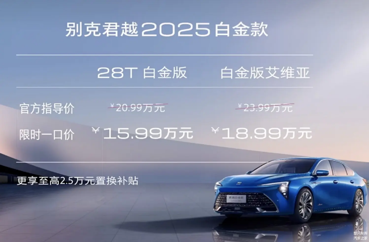 今日,上汽通用2025款 别克君越(图片 | 参数 | 询价)白金款正式上市,官方指导价格为20.99万元和23.99万元,分别命名为白金版和白金版艾维亚,目前新车上市优惠价格为15.99万元和18.99万元。相比指导价格优惠五万元。这个价格大家觉得怎么样?