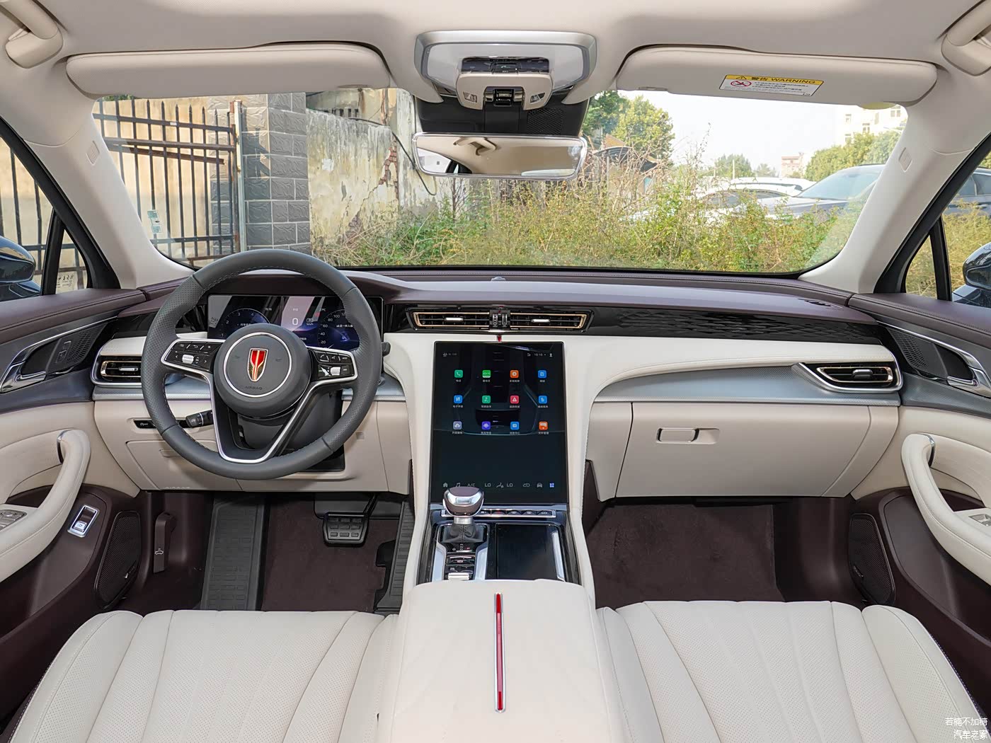 再高一级,则是作为次顶配的18.98万元的2.0T旗畅版与顶配,指导价为21.58万元的2.0T旗领版。这两款配置增加了发光旗标、18英寸轮圈、前排座椅通风、40W手机无线充电、座椅与外后视镜记忆等功能,2.0T旗领版还额外搭载了自适应远光灯、抬头显示、方向盘加热、12扬声器音响、香氛系统、主驾座椅按摩与后排隐私玻璃。这两个配置则将智能化程度与豪华程度彻底与当前市场的新势力车型基本持平——动力来源从来都不是配置高低的决定因素,车内的各种配置,燃油车一样可以拥有。