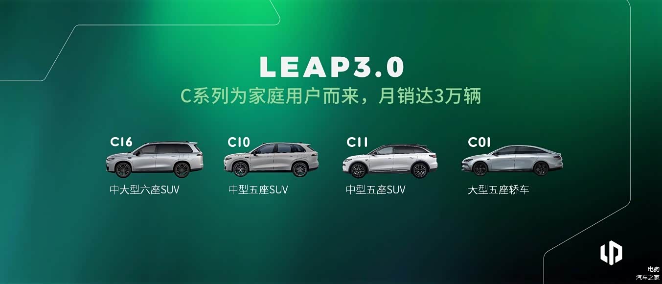 通过近三年时间的技术垂直整合与迭代,零跑将C系列产品逐渐在12万、15万和16万不同细分电动SUV打造成为核心消费产品。并通过纯电和增程满足不同需求,打穿了市场与渠道。