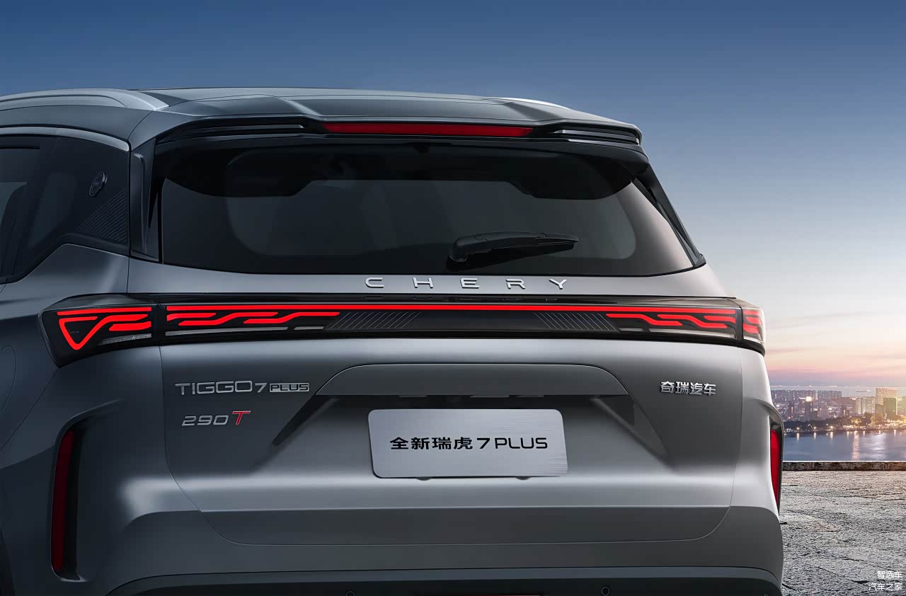 外观方面,全新瑞虎7 PLUS采用了虎威前脸,搭配晶耀钻石格栅和两侧大灯组内部的双“L”形日间行车灯,保证了视觉档次感和冲击力。侧面流畅的线条带来颇具力量感的车身姿态,还通过熏黑的B、C、D柱营造出悬浮式车顶的视觉效果。尾部的贯穿式尾灯由74颗LED灯珠构成,并呈现出类似于海浪的既视感,看起来非常别致。