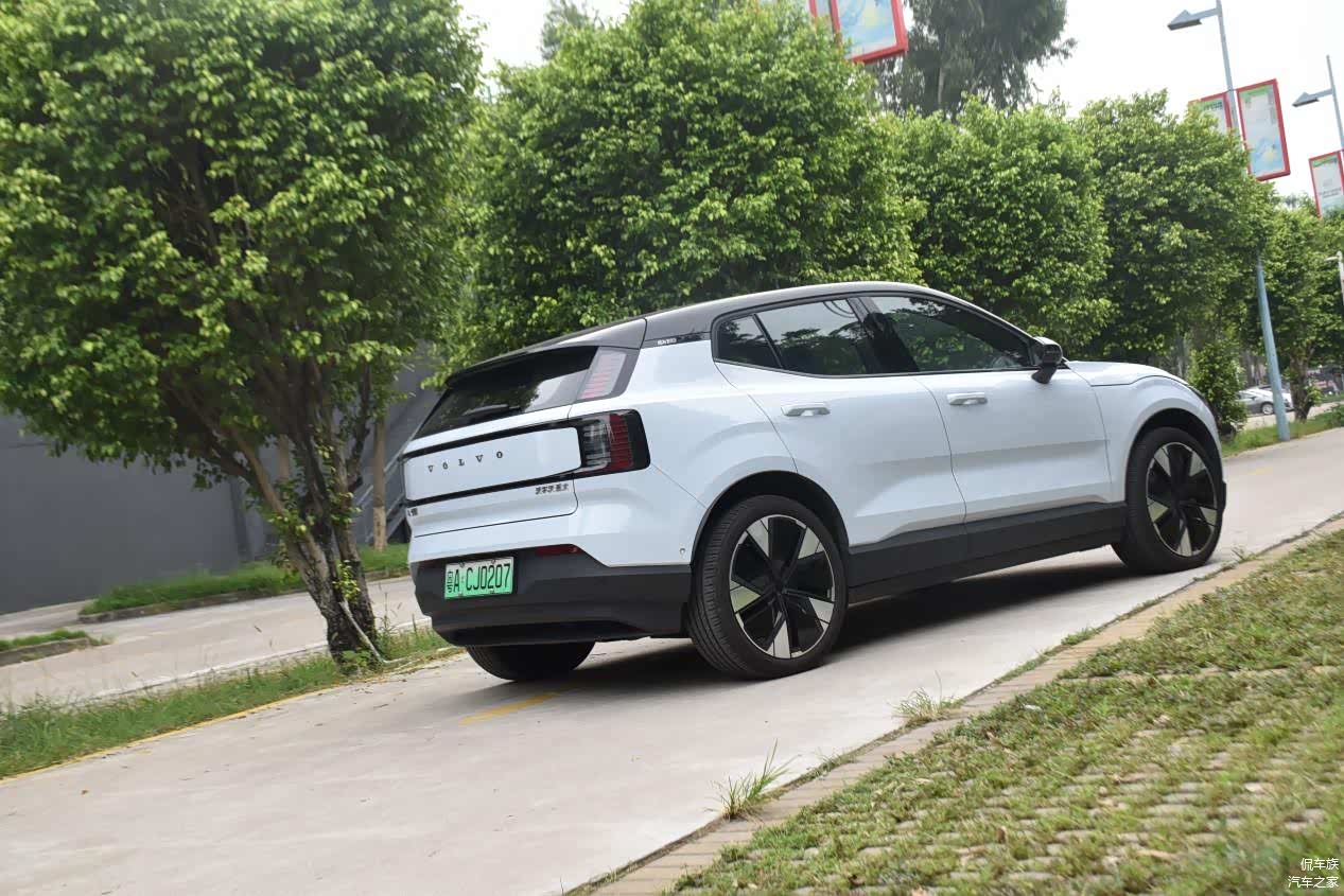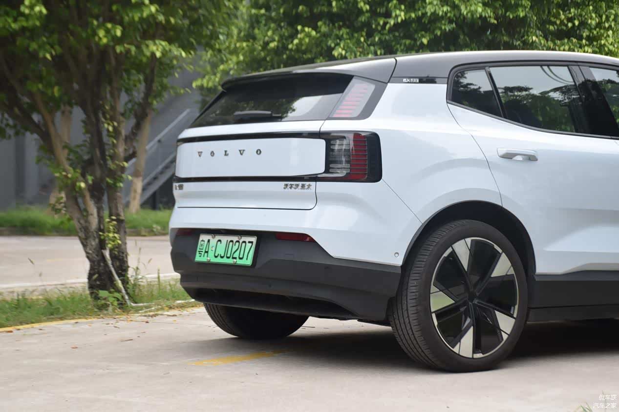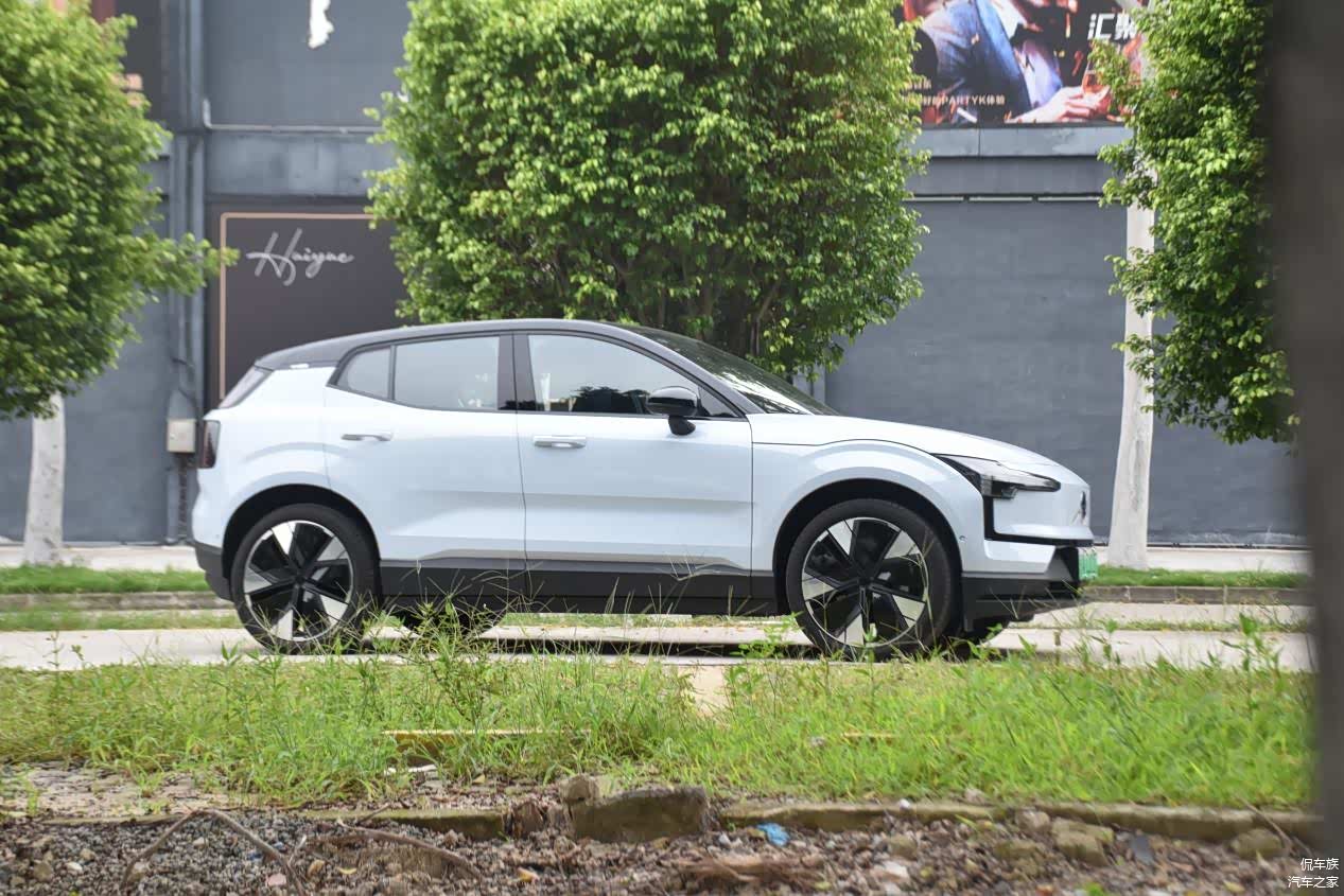 沃尔沃EX30作为沃尔沃品牌迄今为止最小的SUV车型,其外观设计简约而不失精致。海云蓝配色在阳光下显得格外耀眼,车身线条流畅,A、B、C柱的熏黑处理与平直的车顶营造出悬浮式的视觉效果,搭配低风阻的19英寸轮圈,整体造型时尚且运动感十足。