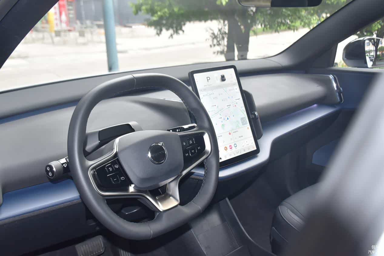 沃尔沃EX30的内饰延续了简约的设计风格,同时融入了北欧风格的主题寓意,提供了雾蓝、槐蓝、松绿和锌灰等四种主题可选。我体验的这台车是海云蓝外观搭配槐蓝主题内饰,整体色调和谐统一,营造出一种宁静而高级的氛围。