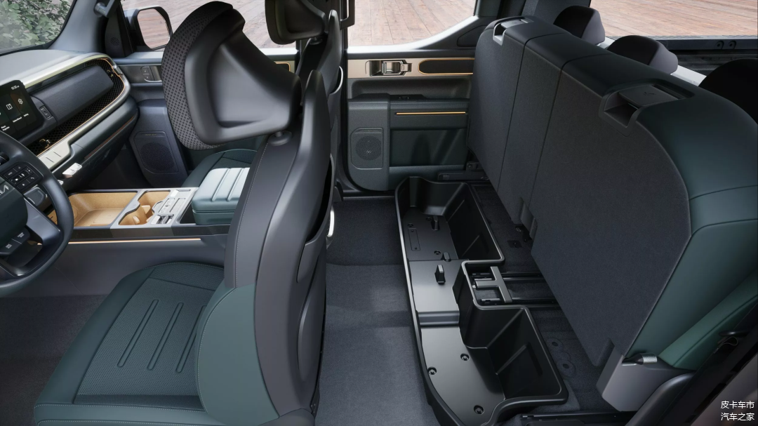 驾驶室内的实用功能还包括中控台上的折叠桌、后排座椅下方的33升储物箱和可倾斜的后排座椅。得益于Tasman的方正设计,起亚声称其头部空间、肩部空间和第二排腿部空间均为同类最佳。