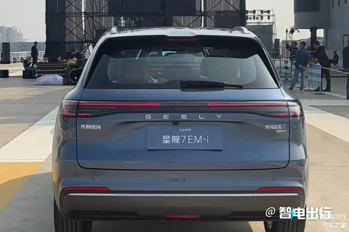 银河星舰7 EM-i比比亚迪宋Pro DM-i更大,采用封闭式格栅+分体式大灯组,搭载贯穿式日间行车灯。尾灯很像银河E5,牌照架移至尾门上方。