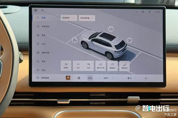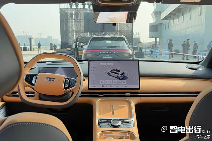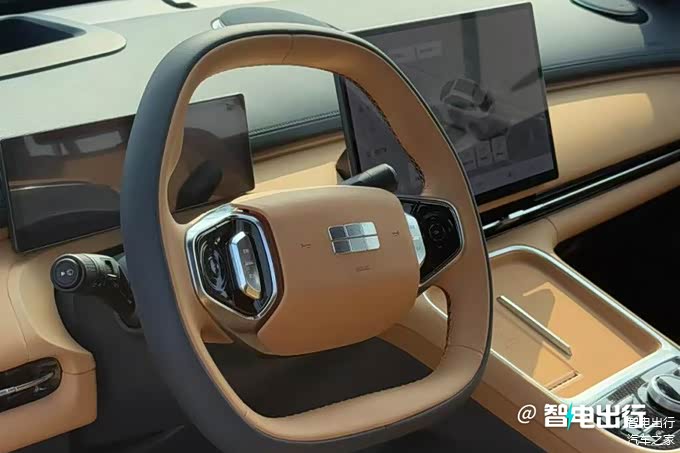 银河星舰7 EM-i采用双辐式多功能方向盘,搭载10.1英寸全液晶仪表+14.6英寸中控屏,内置魅族Flyme Auto车机。新车配备16扬声器Flyme Sound音响、50W手机无线充电、W-HUD、540°透明底盘等配置。