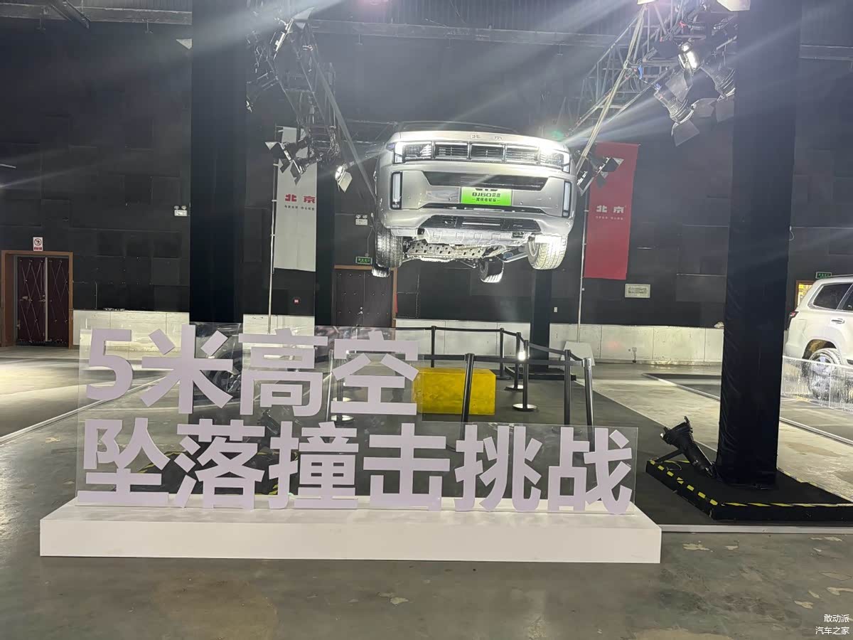 在第三项跌落实验中,BJ60雷霆整车从5米高空处自由下落,并且底盘砸向地面大型坚固障碍物,冲击力达到2611950N。实验完成后,电池安然无恙,无漏液、未自燃、爆炸。这可以说是一次把托底放大无数倍的对电池的极端考验。一般来说这样飞坡撞底落差不会有5m这么大,但是这次实验直接把这个工况给上了强度。