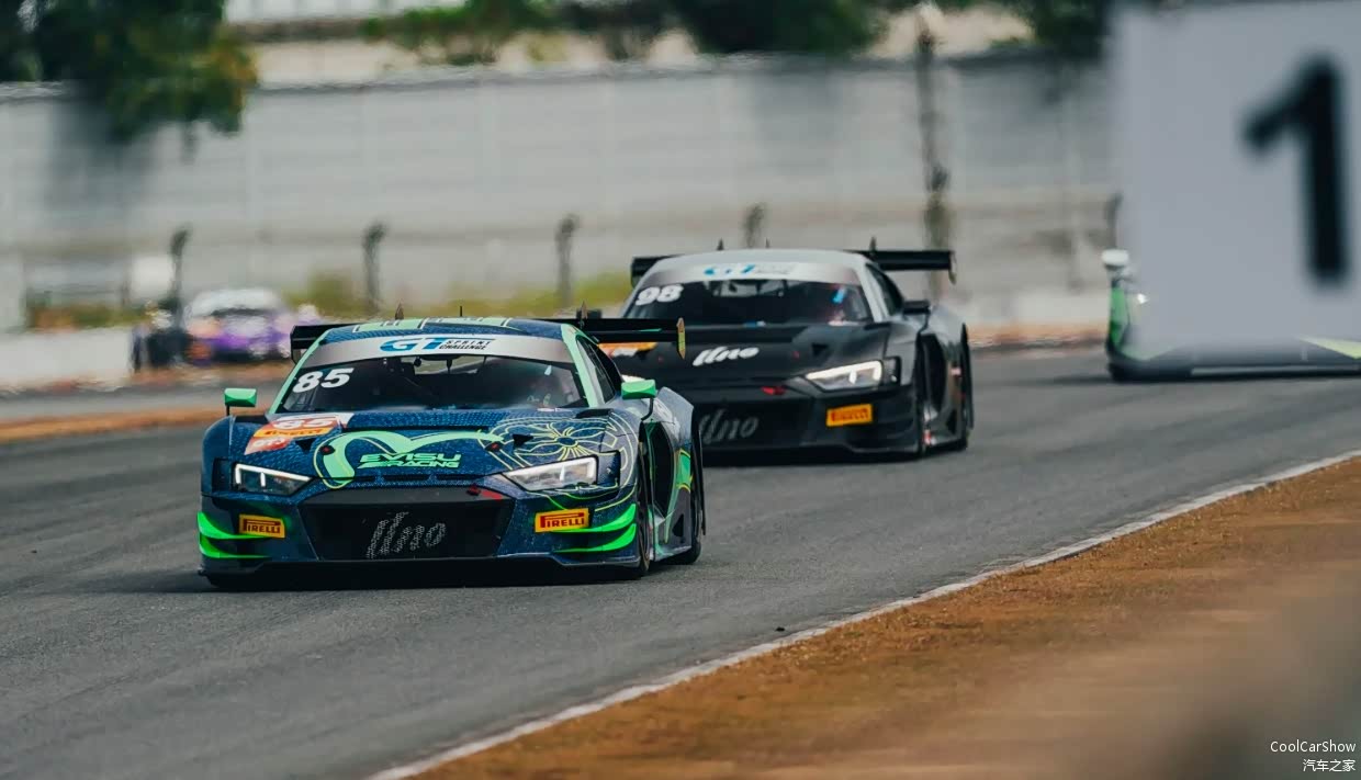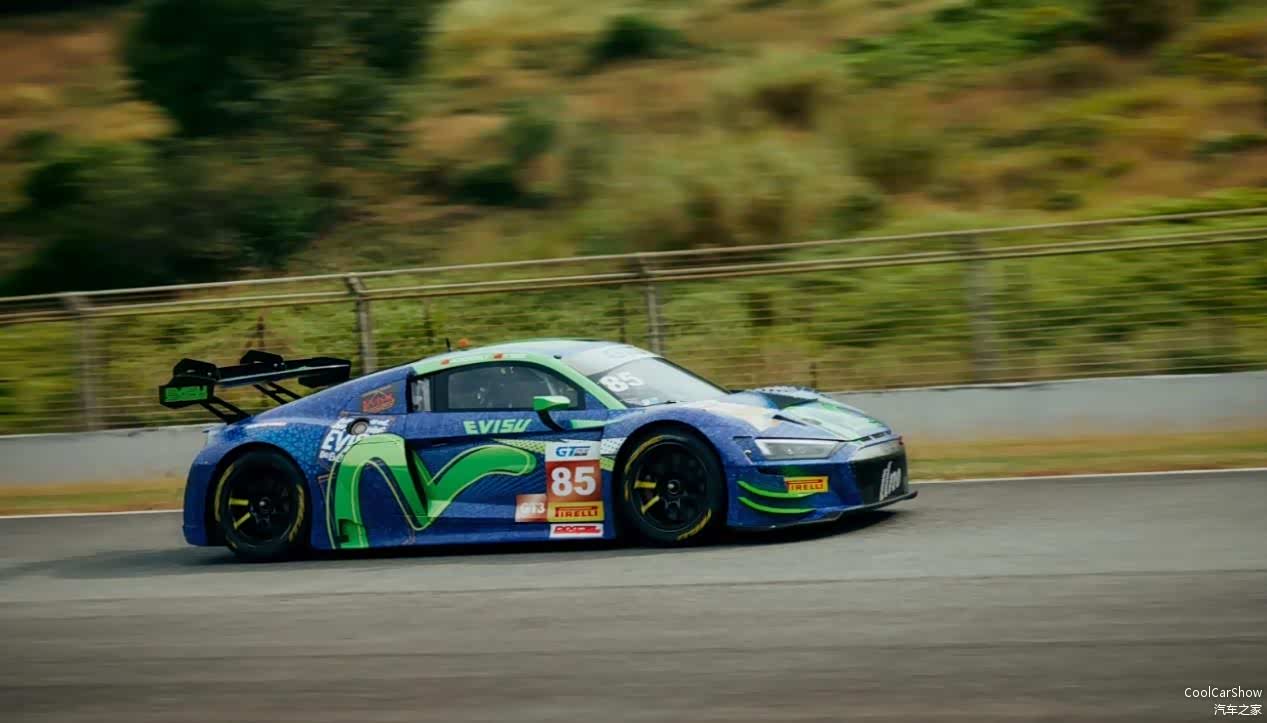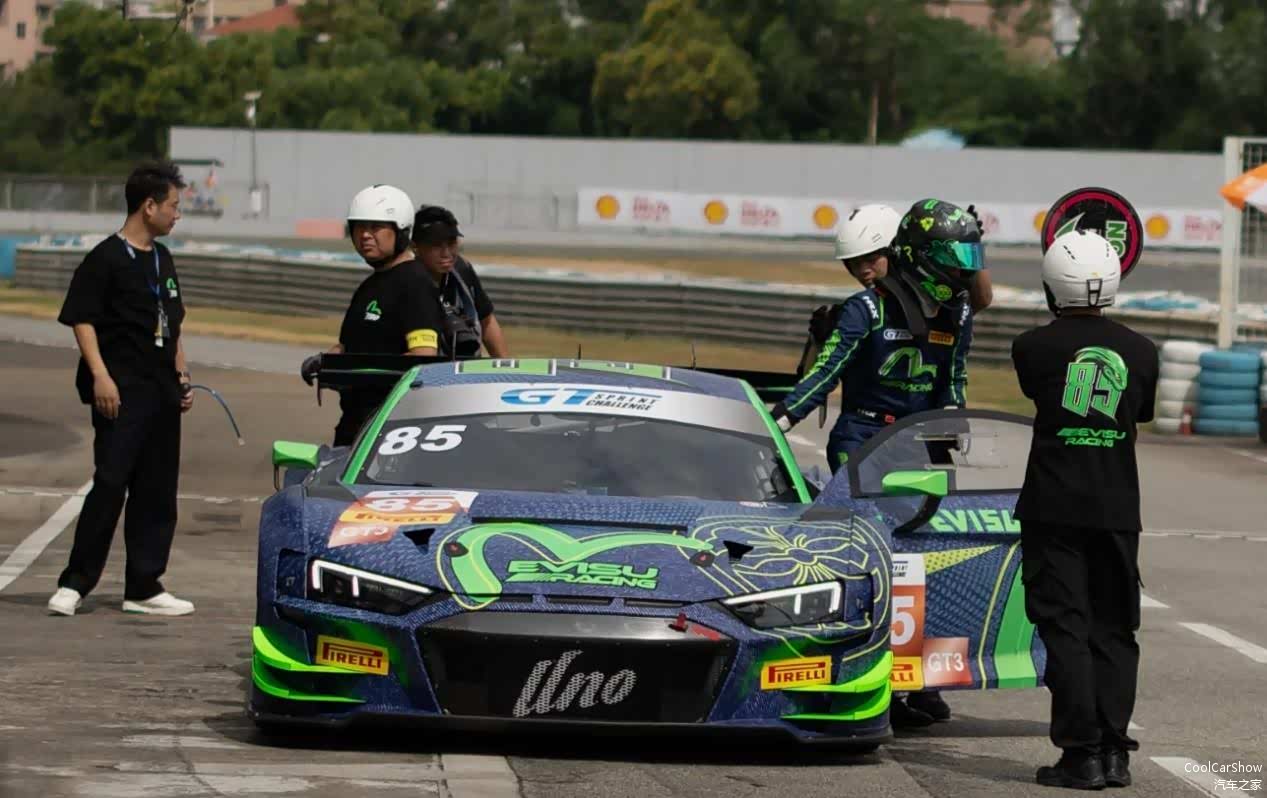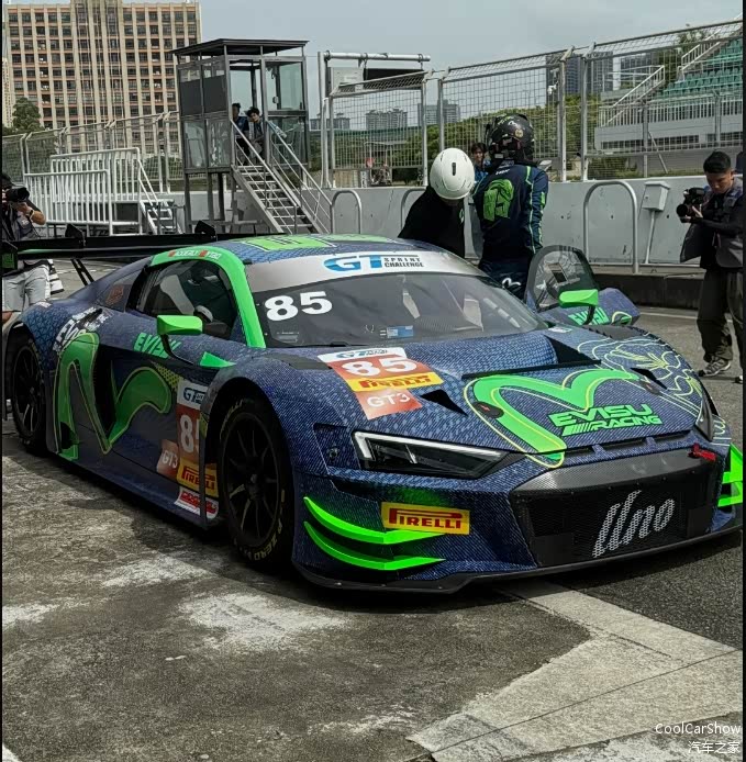 王一博座驾是来自UNO Racing Team的奥迪R8 LMS GT3赛车,车身也覆盖“青蛇”涂装、lucky number“85”等一系列专属于王一博的独特元素,在一众GT3赛车当中可谓是相当显眼。