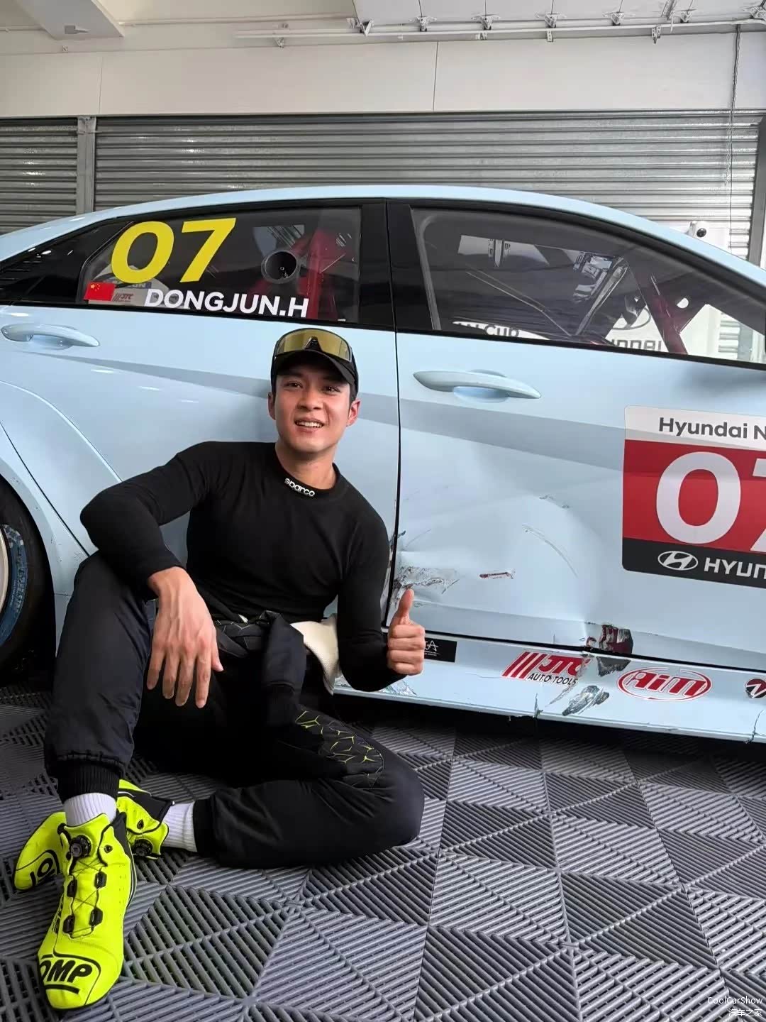 韩东君这次在现代N统归赛首秀中,驾驶07号伊兰特N赛车,在并不熟悉的ZIC赛道上,虽然没有登上领奖台,但在两回合分别以P8、P7完赛,并取得了积分。在车损不大的情况下提升了名次,这对于一个演艺人车手来说实属不易。