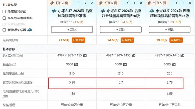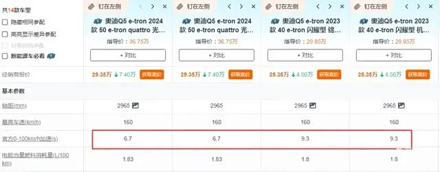 例如,奥迪Q5 e-tron的标准版百公里加速耗时长达9.3秒,即便是高性能版本也需6.7 秒,而特斯拉、小米SU7的高性能车型百公里加速时间可以达到3秒左右,相比之下难以吸引追求驾驶激情的消费者。