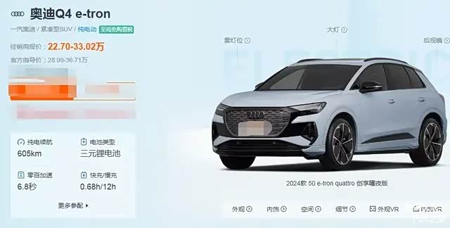 奥迪Q4 e-tron整体降价幅度在11万-12.7万元,再加上旧车置换补贴1.3万元、奥迪大客户额外补贴,十几万买奥迪不是梦。
