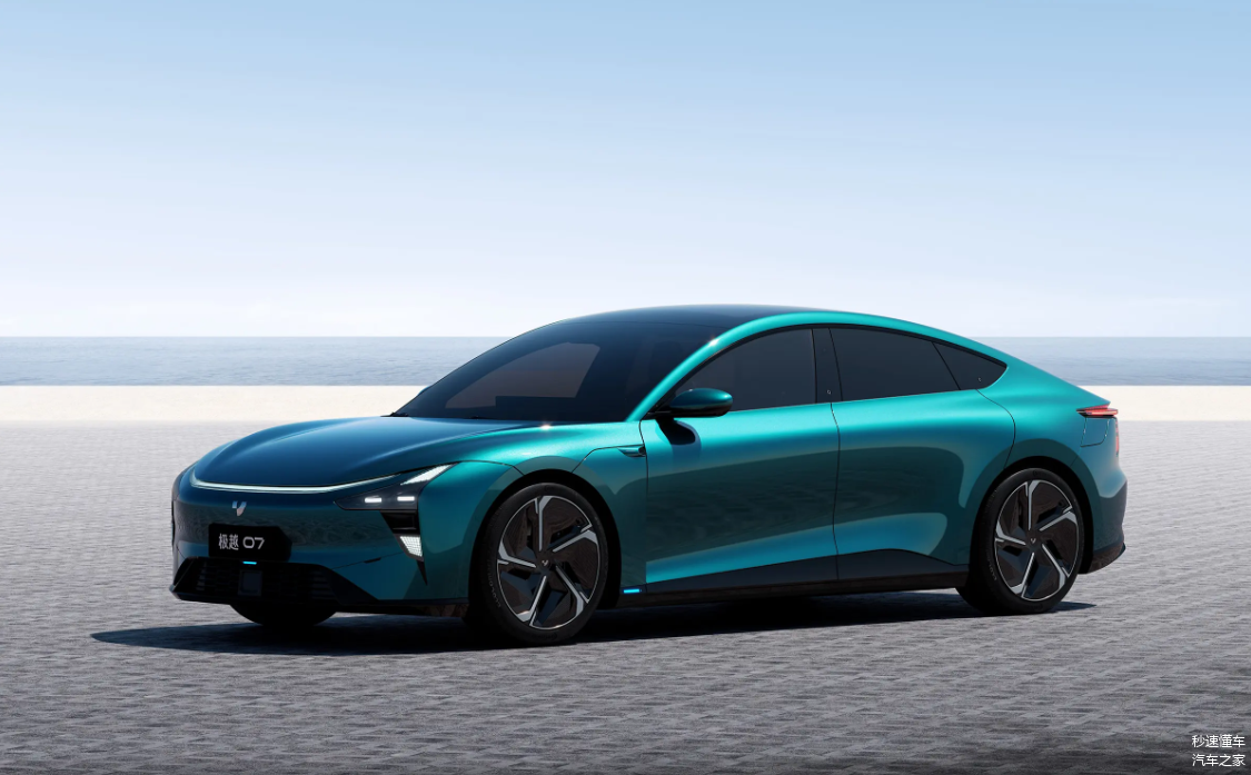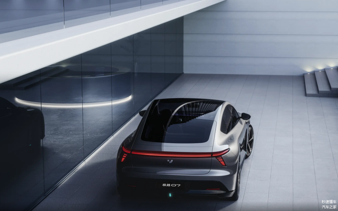 外观设计:极越 07 的外观设计充满了未来感和科技感。前脸采用了封闭式的格栅设计,搭配犀利的大灯组和独特的线条勾勒,营造出一种简洁而富有冲击力的视觉效果。车身侧面,流畅的线条和溜背式的造型展现出了优雅的姿态,同时也降低了风阻。车尾部分,贯穿式的尾灯设计与前大灯相呼应,增加了车辆的整体辨识度。