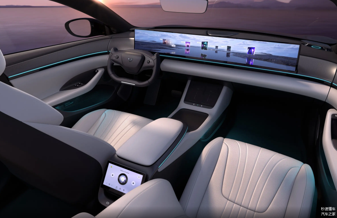 内饰氛围:极越 07 的内饰注重科技与豪华的融合,同时它的设计也颇为前卫。车内采用了高品质的材料,触感舒适,中控台采用了35.6英寸的超大贯穿屏,集成了车辆的大部分功能,能够兼顾仪表盘、中控屏和副驾屏的功能,让整体内饰颇为前卫。另外,它配备8295P-车载智舱芯片2个NPU,AI算力为60TOPS还具有32G内存,车机系统的响应速度快,语音助手具备奇趣探索、角色扮演、场景模式等诸多能力,还实现了唇动识别功能,车内成员在行驶过程中可以通过语言控制各项功能,便利性突出。