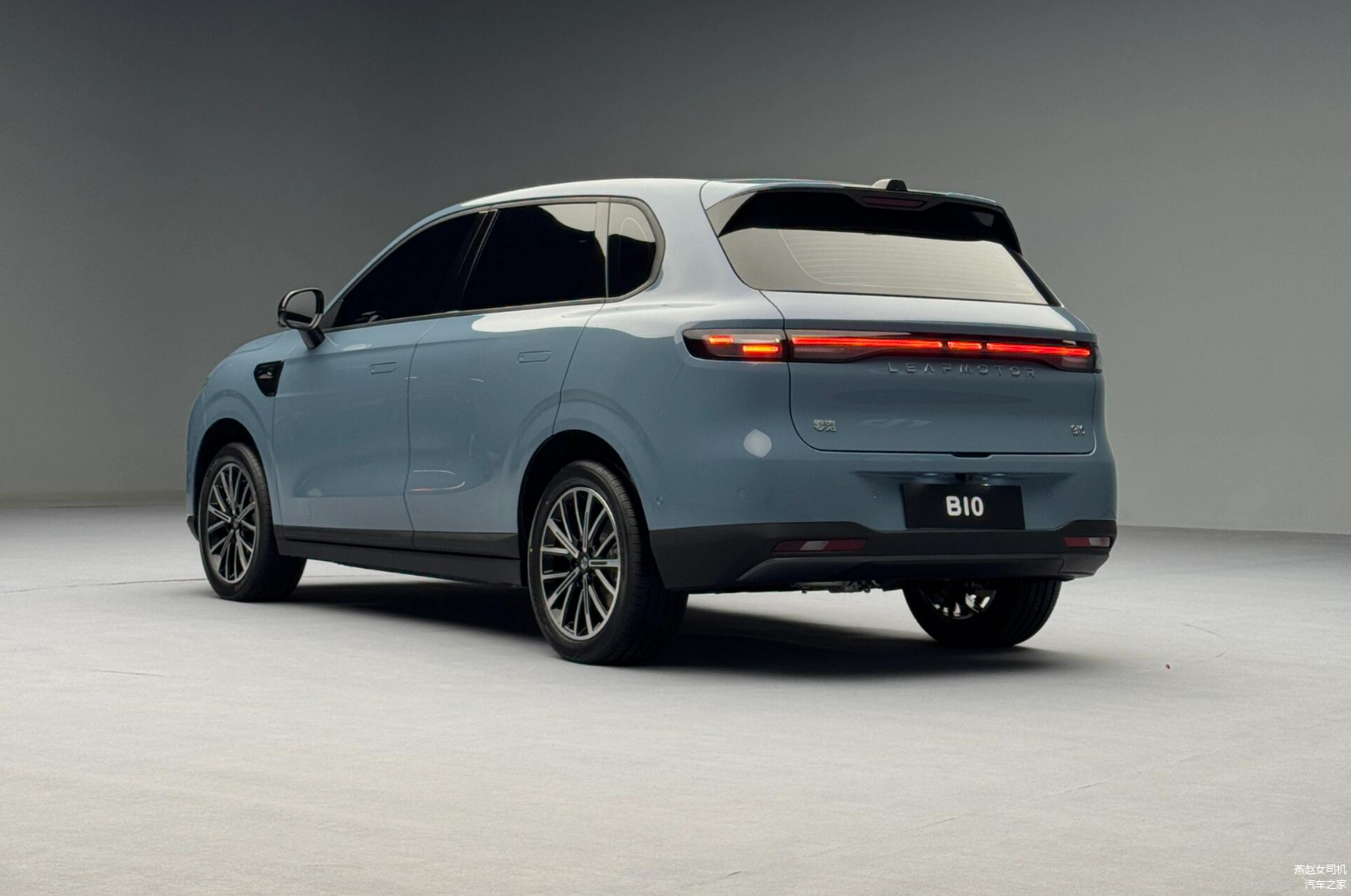 饱满的尾部造型与整车风格相得益彰,贯穿式尾灯内辅以三段式灯组,也与前脸相呼应,加之中间“LEAPMOTOR”尾标,兼顾科技感与辨识度。而灵感来自童年纸飞机的护航尾饰板,加之熏黑后包围,继续强调运动属性。另外不得不说,零跑B10的蓝色、紫色车漆似乎也在向理想看齐。