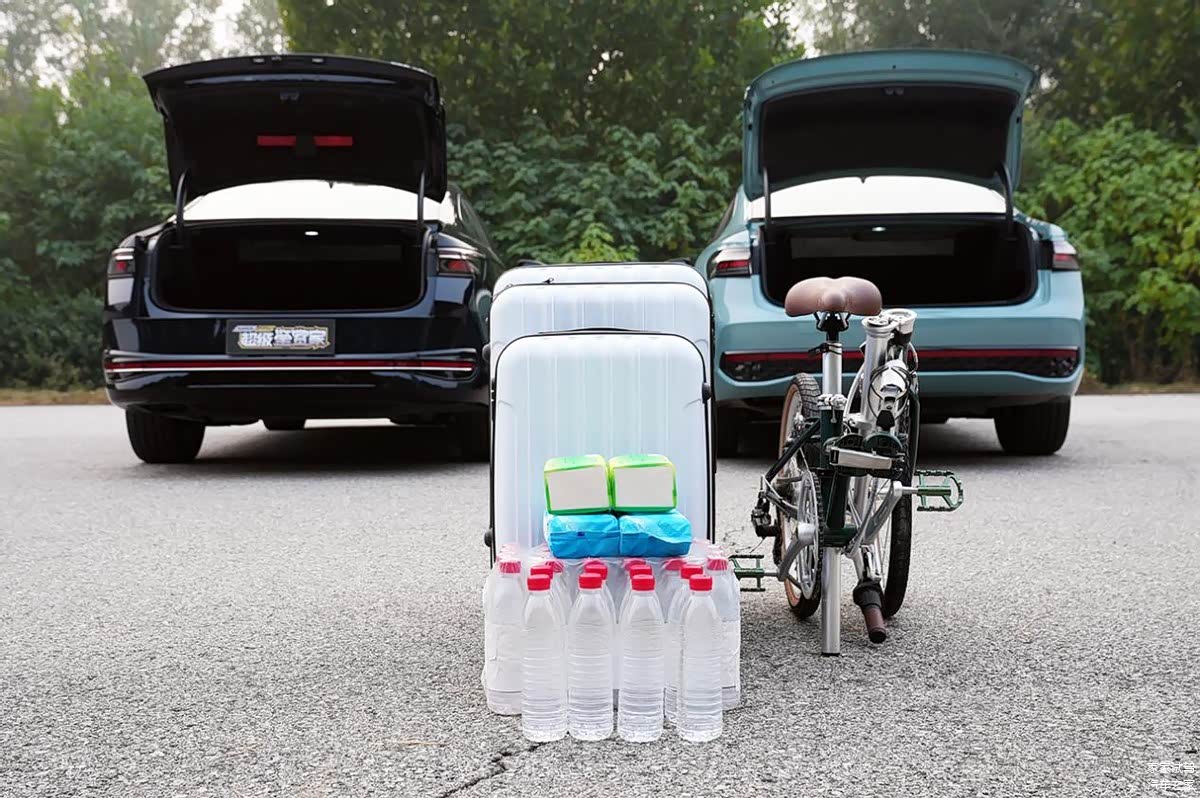 为了体现迈腾和帕萨特Pro两车之间的装载效率以及空间利用率,通过在限定时间内,将一系列物品,比如折叠单车、大型行李箱、以及矿泉水等零碎物品,巧妙地装入后备厢,并尽量保持车内整洁有序。