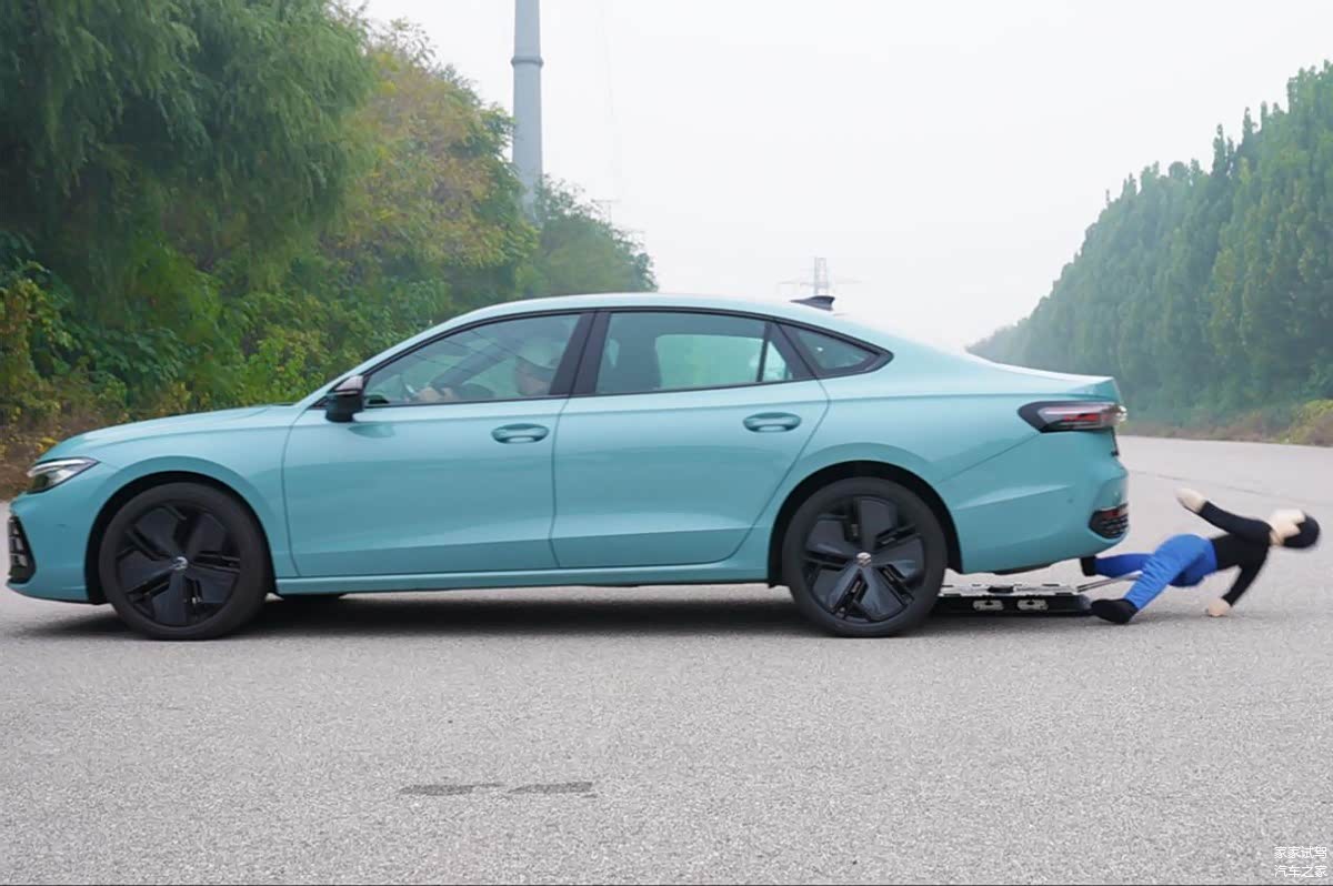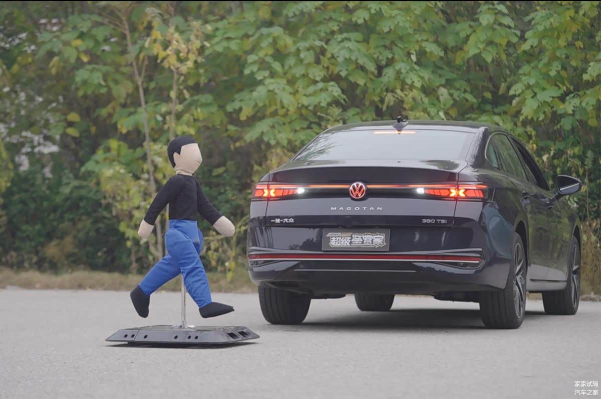 不过,迈腾相比于帕萨特Pro多配备了后方碰撞预警功能,行人后方横穿车辆时,迈腾的主动刹车能力及时避免了碰撞发生。