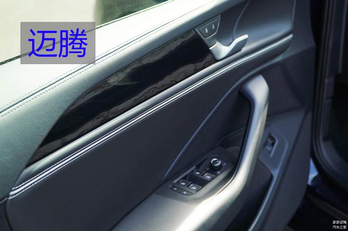 虽然屏幕数量以及智能体验高度同源,座舱布局和设计也基本一致,但在座舱材质与设计细节存在一定的差异。比如,迈腾车门内饰板采用的是注塑加镭射透光工艺,而帕萨特使用的是搪塑工艺;迈腾座椅采用菱形绗缝,而帕萨特则是普通条纹;迈腾后备厢是植绒材质,后排扶手是钢琴烤漆材质,帕萨特都是塑料材质。