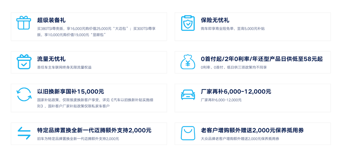在内卷的车市当下,消费者更乐意选择真切且实在的购车福利政策,让利程度越高也更容易获得消费者的芳心。目前,迈腾订车能够享受到以旧换新国补15000元,同时厂家再补6000-12000元;另外特定品牌置换与老客户增购权益为额外支持2000元,但不可同享;保险无忧礼最高可享5000元补贴,首任车主可享车联网终身无限流量权益。