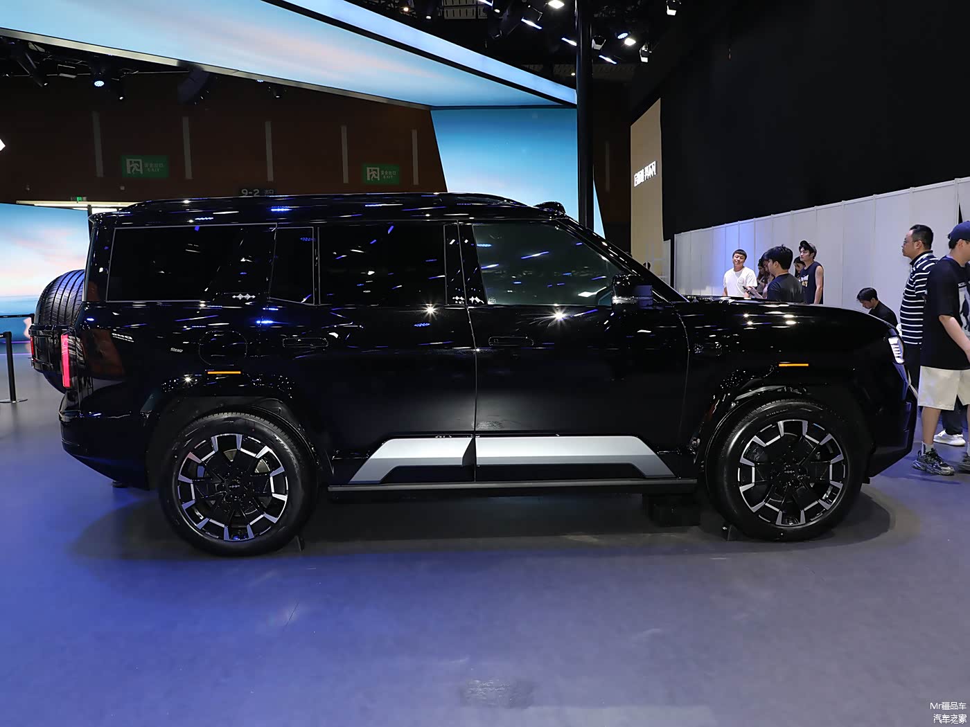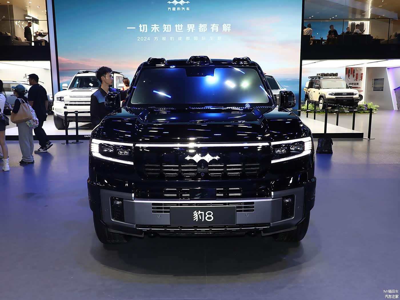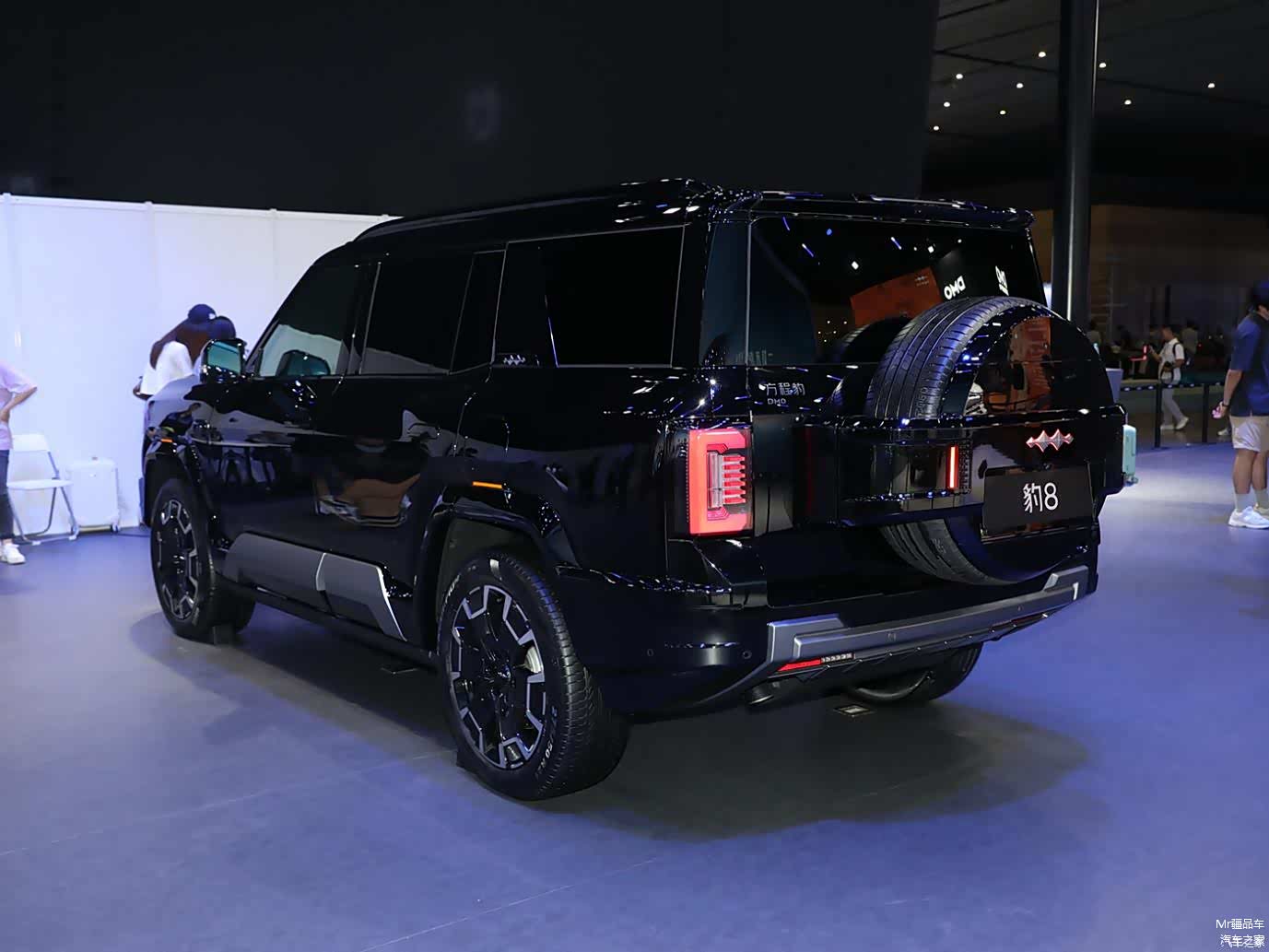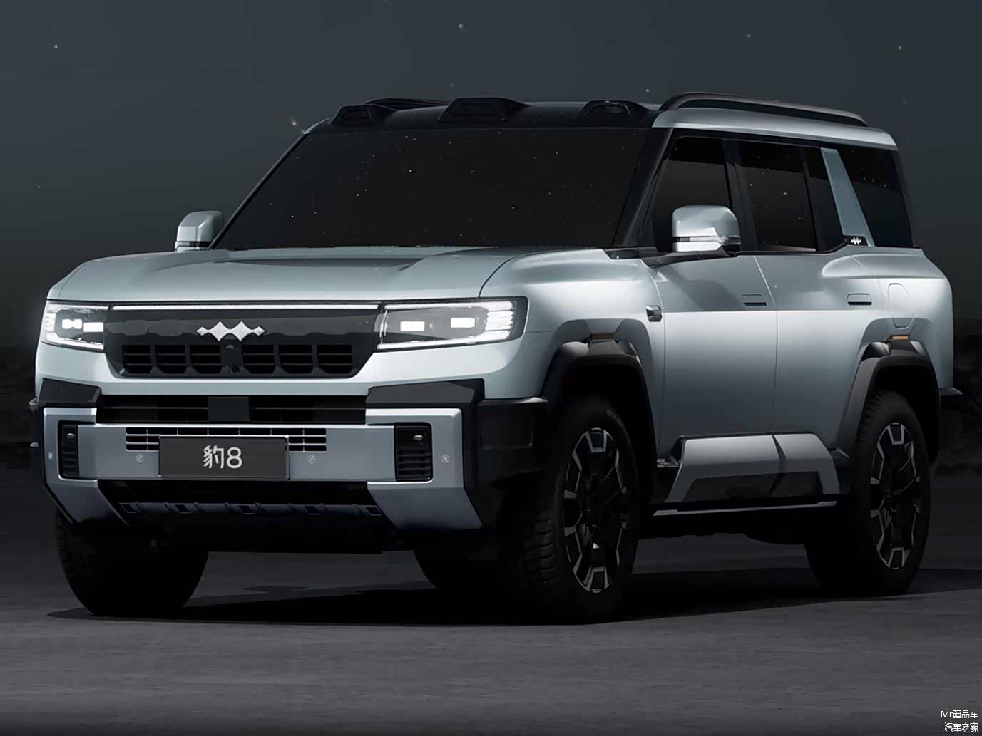 方程豹豹 8 延续了家族硬派风格,采用未来星舰美学设计理念。前脸半封闭式进气格栅与 U 型大灯组融为一体,LED 灯带贯穿其中,辨识度极高。车身侧面方正坚实的线条和外扩式轮眉,强化了硬派气息。车尾外挂式备胎和侧开式尾门的设计,实用又增添了粗犷美感。其长宽高分别为 5195/1994/1905 毫米,轴距为 2920 毫米,比雷克萨斯 LX 轴距还长 70 毫米,视觉上很有气场。